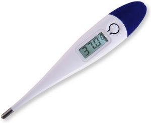 SOHO Rigid Deluxe to termometr elektroniczny ze sztywną końcówką.Cechy charakterystyczne produktu:bezpieczna konstrukcja polecana dla dzieci i dorosłych,czytelny wyświetlacz LCD,czas trwania pomiaru w zależności od miejsca pomiaru: do 60 sekund lub do 5 minut,pamięć ostatniego pomiaru,sygnalizacja akustyczna zakończenia pomiaru,automatyczne wyłączanie,wodoodporna konstrukcja ułatwiająca czyszczenie,zasilanie bateryjne 1,5 V,waga: 11,8 g.Szczegółowe dane techniczne:Wyświetlacz: CiekłokrystalicznyZakres pomiaru: od 32°C do 42,9°CDokładność: W standardowej temperaturze pokojowej18˚C–28˚C: ± 0,1˚C (0.2˚F) dla zakresu35,5˚C–42˚C (95.9˚F–107.6˚F), ±0.2˚C(0.4˚F) poniżej 35,5˚C lub powyżej 42˚C(poniżej 95.9˚F lub powyżej 107.6˚F)Bateria: LR41 alkaliczna, SR41 srebrna lub lub UCC 392Żywotność baterii: 200 godzin pracy Warunki pracy: Temperatura od 5°C do 40°C, wilgotność 30 - 85%Przechowywanie: Temperatura od -10°C do 60°C,wilgotność 25 - 90%Wymiary: 139x123x13mmWaga: 11,8 g(z baterią)