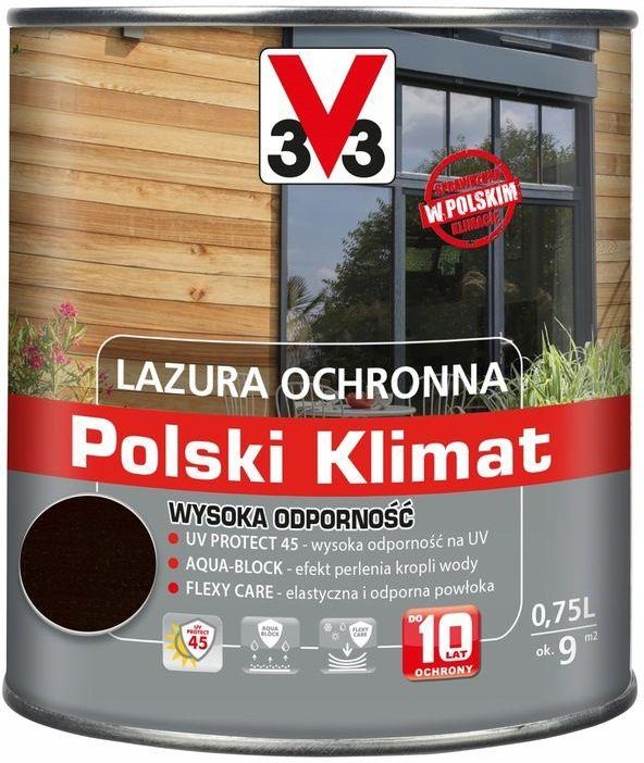 V33 Lazura Ochronna 0,75L 10Lat Polski Klimatorzech Ciemny Wysoka Odporność Baborów
