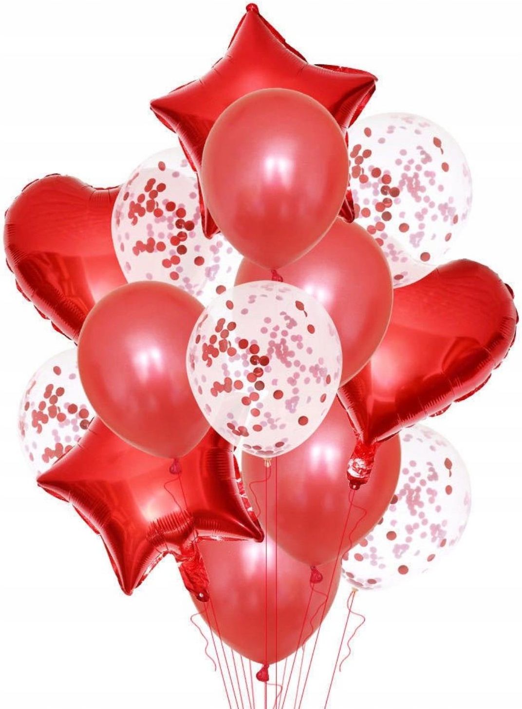 Balony Z Konfetti Zestaw Czerwony Red 14Szt Baranów Sandomierski