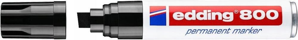 Marker permanentny Edding 800, końcówka ścięta, 4-12mm, czarny Marker permanentny do znakowania dużych powierzchni. Dostosowany do znakowania szerokiej gamy materiałów, m.in. papieru, kartonu, metalu, plastiku, szkła i drewna. Co więcej, solidna konstrukcja z wodoodpornym, szybko schnącym, delikatnie pachnącym tuszem odpornym na blaknięcie sprawia, że marker doskonale leży w dłoni. Okrągła końcówka pisząca o szerokości 4-12 mm. Wodoodporny i odporny na ścieranie na niemal każdej powierzchni. Dostępne w kolorze czarnym, czerwonym, niebieskim, zielonym, żółtym, pomarańczowym i brązowym. Bezwonny tusz bez dodatku toulenu/ksylenu. Wysokiej jakości aluminiowa obudowa. Kształt końcówki: stalówka dłuta. Bardzo trwałe markery, idealne do zastosowań warsztatach i logistyce. ścięta końcówka 4-12 mm do różnych powierzchni szybkie schnięcie do ponownego napełnienia aluminiowa obudowa permanentny metal plastik papier kartonowy szkło suche drewno skóra tusz odporny na wysoką temperaturę