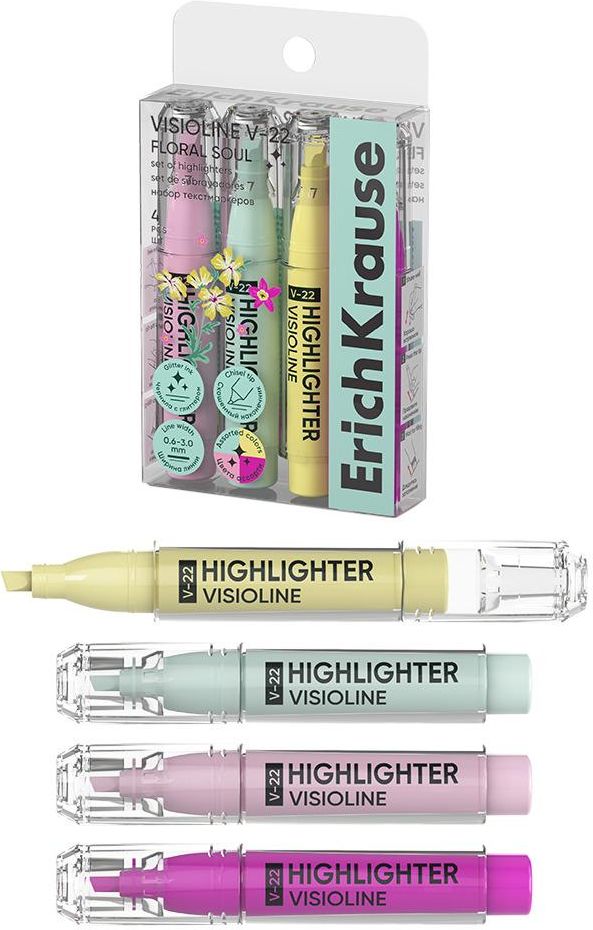 Erich Krause Zakreślacze Krause, V-22, Floral, Zestaw 4 Kolorów, 63562 Baranów Sandomierski