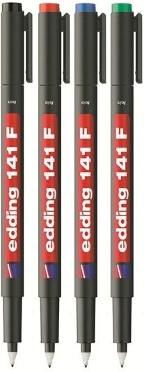 FOLIOPIS E-141/4 F EDDING, 0,6MM, 4 SZT., ZAWIESZKA, MIX KOLORÓW Cienki pisak permanentny do znakowania praktycznie wszystkich nieporowatych plastikowych powierzchni Napisy mogą zostać poprawione lub usunięte przy użyciu alkoholu Okrągła końcówka pisząca o szerokości 0,6 mm Tusz markera …