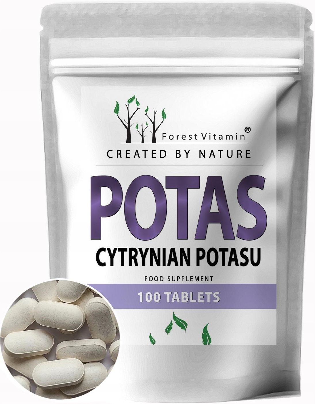 Forest Vitamin - Cytrynian Potasu 100 tabletek Wspomaga utrzymanie ciśnienia krwi Bierze udział w pracy mięśni Uczestniczy w funkcjonowaniu układu nerwowego Wspiera gospodarkę elektrolitową organizmu Pomaga w utrzymaniu prawidłowej pracy serca Cytrynian Potasu – Suplement diety wspierający równowagę elektrolitową Cytrynian potasu to organiczna forma potasu, która wyróżnia się wysoką biodostępnością i łagodnym wpływem na układ pokarmowy. Jako suplement diety może wspierać organizm w utrzymaniu prawidłowego poziomu potasu, szczególnie w okresach zwiększonego zapotrzebowania lub w sytuacjach, gdy jego poziom w diecie jest niewystarczający. Dlaczego potas jest ważny? Potas to jeden z kluczowych elektrolitów niezbędnych do prawidłowego funkcjonowania organizmu. Bierze udział w wielu procesach fizjologicznych – od pracy mięśni i układu nerwowego, przez utrzymanie równowagi kwasowo-zasadowej, aż po wsparcie dla serca i ciśnienia krwi. Suplementacja potasu w postaci cytrynianu może być pomocna jako uzupełnienie diety w ten ważny składnik mineralny. Główne funkcje potasu w organizmie Wspiera utrzymanie prawidłowego ciśnienia krwi Potas przyczynia się do utrzymania prawidłowego ciśnienia krwi poprzez udział w gospodarce sodowo-potasowej. Zrównoważona zawartość tych elektrolitów może sprzyjać utrzymaniu optymalnych parametrów krążeniowych. Wspomaga prawidłowe funkcjonowanie mięśni Potas jest niezbędny dla prawidłowej pracy mięśni, w tym również mięśnia sercowego. Jego odpowiedni poziom może wspierać skurcze mięśni oraz ich regenerację. Uczestniczy w przewodnictwie nerwowym Elektrolity takie jak potas odgrywają istotną rolę w transmisji impulsów nerwowych. Odpowiednie stężenie potasu może wspierać sprawne działanie układu nerwowego. Pomaga w utrzymaniu równowagi elektrolitowej Potas bierze udział w regulacji gospodarki wodno-elektrolitowej organizmu. Jego obecność w komórkach wpływa na procesy osmotyczne i równowagę kwasowo-zasadową. Wpływa na metabolizm komórkowy Potas wspomaga przemiany energetyczne, wspiera aktywność enzymatyczną i bierze udział w metabolizmie węglowodanów oraz białek. Dlaczego cytrynian potasu? Cytrynian potasu to forma organiczna, która cechuje się wysoką przyswajalnością,jest delikatna dla żołądka,często wybierana jest przez osoby wrażliwe na inne formy potasu (np. chlorek potasu),może być stosowana długofalowo w ramach uzupełnienia diety. Dla kogo może być przydatna suplementacja potasu? Osoby aktywne fizycznie, tracące potas wraz z potem Osoby stosujące diety niskosodowe lub niskowęglowodanowe Osoby dbające o układ sercowo-naczyniowy Osoby chcące wspomóc funkcje mięśni i nerwów Osoby na diecie ubogiej w warzywa i owoce – naturalne źródła potasu Zalety suplementu Cytrynian Potasu Forest Vitamin 324 mg jonów potasu w jednej tabletce Aż 100 tabletek w opakowaniu – wystarcza na ponad 3 miesiące suplementacji Skład bez zbędnych dodatków Wygodna forma tabletek Produkt odpowiedni dla wegan Tak prezentują się tabletki naszego suplementu Postać: Tabletki Zawartość potasu: 324 mg jonów potasu w 1 tabletce (21,6% RWS) Zalecane spożycie: 1 tabletka dziennie po posiłku, popijając wodą Masa netto: 140 g Ilość tabletek w opakowaniu: 100 OPAKOWANIE STRUNOWE TYPU DOYPACK:OPAKOWANIE – praktyczne, lekkie opakowanie strunowe typu DOYPACK – zapewnia doskonałe warunki przechowywania tabletek. Aktualne Badania produktu NATURALNIE WARTO NAM ZAUFAĆ ZAPRASZAMY PAŃSTWA DO ZAKUPÓW I ŻYCZYMY ZDROWIA! Wyprodukowano w UE dla GREAT-MASS S.C. GRZEGORZ BIERNAT, JANUSZ BIERNAT „Suplement diety jest środkiem spożywczym, którego celem jest uzupełnienie normalnej diety. Suplement diety nie ma właściwości leczniczych”