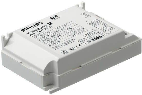 Statecznik do świetlówek firmy PHILIPS HF-PERFORMER. Napięcie wejściowe: 220-240 V Częstotliwość wejściowa: 50 do 60 Hz Częstotliwość robocza (Max): - kHz Częstotliwość robocza (Min): 42 kHz Częstotliwość robocza (Nom): 45 kHz Metoda zapłonu: ciepły zapłon Współczynnik szczytu (Max): 1,7 Współczynnik mocy 100% obciążenia (Nom): 0,95 Czas zapłonu (Max): 0,52 s Wydajność napięcia zasilania (AC): -8%-+6% Bezpieczeństwo napięcia sieciowego (AC): -10%-+10% Prąd upływu (Nom): 0,5 mA Szerokość prądu rozruchowego: 0,25 ms Stała odchyłka mocy: -2%/+2% Współczynnik statecznika (Nom): 1 Strata mocy (Nom): 2.86-2.66 W Szczyt prądu rozruchowego (Max): 18 A Sprawność przy pełnym obciążeniu [%]: 91,66 %