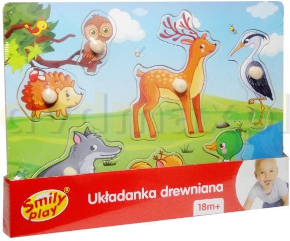 SMILY PLAY Układanka drewniana Las Układanka drewniana Las Układanka drewniana z motywem zwierzątek leśnych, z wygodnymi uchwytami dla małych paluszków. Twój maluszek może poznawać zwierzęta podczas zabawy - układania. Drewniane puzzle nauczą poznawać kolory i kształty oraz nazywać zwierzęta. …