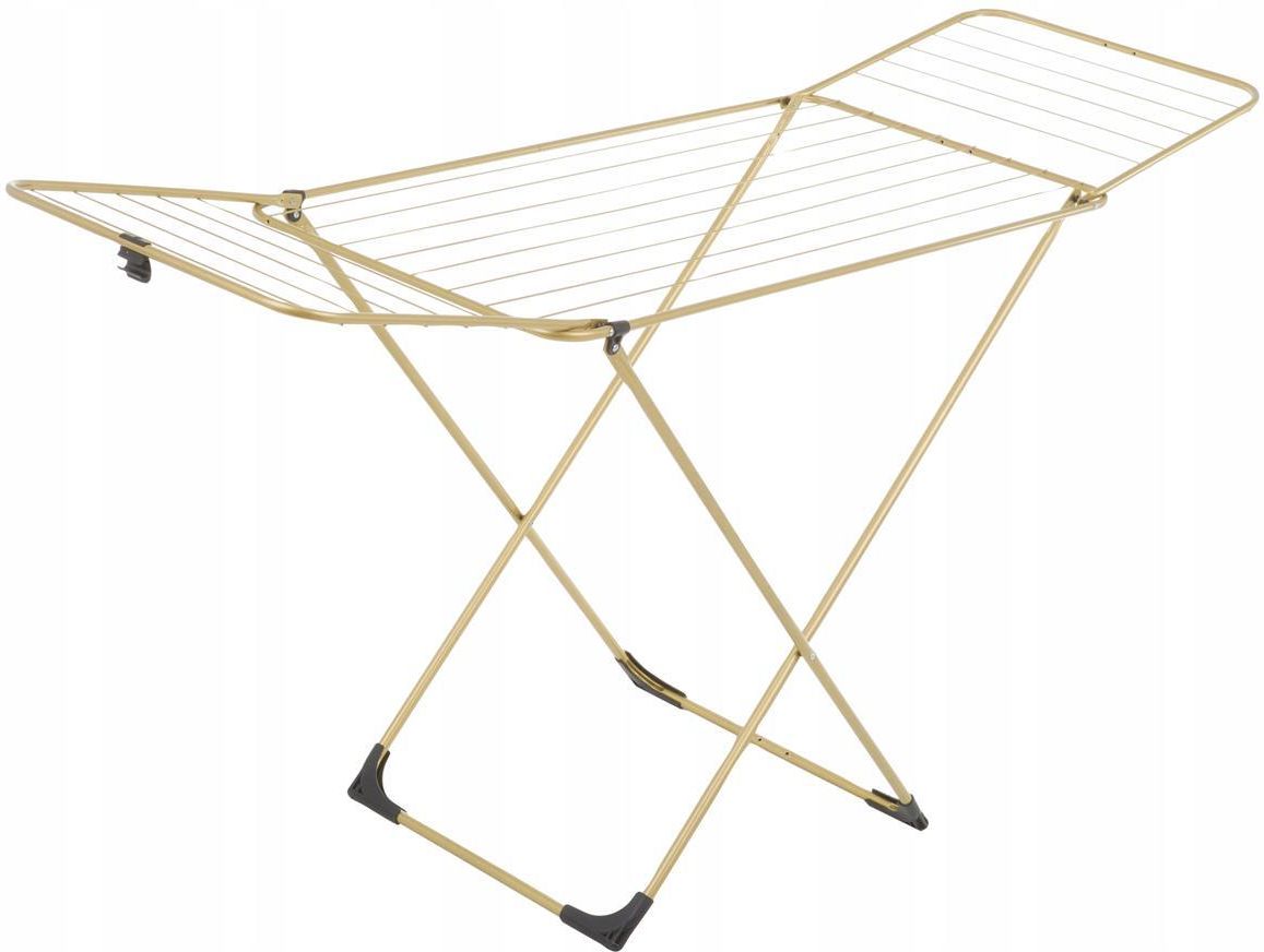 Suszarka na pranie stojąca Velkea H200 183x55x99 cm złoty Producent: VELKEA Kod produktu: 41016 Suszarka do bielizny model H200 od marki Velkea. Idealna dla osób poszukujących trwałego i funkcjonalnego rozwiązania do suszenia odzieży. Jej solidna konstrukcja wykonana ze stali, zapewnia wytrzymałość i stabilność. Dodatkowo suszarka posiada odporność na działanie promieni UV oraz zmiennych warunków atmosferycznych, co pozwala na użytkowanie jej zarówno wewnątrz, jak i na zewnątrz. Nóżki zostały wyposażone w antypoślizgowe nakładki, dzięki czemu produkt może stać nawet na śliskich powierzchniach. Złoty kolor suszarki sprawia, że pięknie prezentuje się ona w każdym wnętrzu. Model H200 posiada praktyczny mechanizm rozkładania oraz zabezpieczenie przed samoczynnym złożeniem zapewniając wygodę i bezpieczeństwo podczas codziennego użytkowania. Wbudowana blokada skrzydełek ułatwia przenoszenie i przechowywanie suszarki. Produkt został wyprodukowany w Polsce i posiada certyfikat TÜV Nord. Suszarka Velkea H200 to doskonały wybór dla tych, którzy cenią sobie trwałość, funkcjonalność oraz estetykę. Cechy produktu: suszarka na pranie, ma piękny złoty kolor, posiada 2 rozkładane skrzydła, trwała i stabilna, odporna na działanie promieni UV, do użytku wewnątrz i na zewnątrz, estetyczny design, posiada antypoślizgowe nakładki na nogi, łatwo i wygodnie się rozkłada, wbudowane zabezpieczenie przed samoczynnym złożeniem, blokada skrzydełek ułatwiająca przechowywanie, wyprodukowana w Polsce, posiada certyfikat TÜV Nord. Wymiary produktu: długość 183 cm, szerokość 55 cm, wysokość 99 cm, maksymalne obciążenie 18 kg, długość użytkowa 18m, wymiary po złożeniu 124 x 55 x 4 cm.