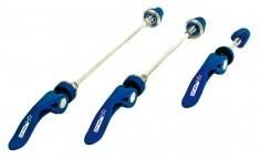 Zacisk piasty QR-L05 przód + tył + sztyca - niebieskie Zestaw zacisków z rączką na szybkozamykacz w komplecie z osią zacisku rury podsiodłowej w modnym wykonaniu i stylowej palecie kolorów. Producent: XLC Model: QR-L05 Wysokiej jakości zaciski do piast+ oś zacisku sztycy Materiał osi: stal chromowo-molibdenowa Materiał dźwigni: aluminium 7075 Oś: 9mm Wersja zacisków na rączkę z szybkozamykaczem Komplet zacisków o niskiej wadze Waga: ok. 150 g Aluminium zastosowane dla precyzji wykonania, estetyki, odporności na korozję przy niskiej wadze oraz dużej wytrzymałości.