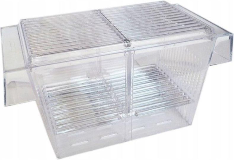 Kotnik akwarystyczny do separacji ryb Kotnik o wymiarach 20,5cm x 10cm x 10,5cm Bezpieczny dla kotnych ryb oraz chorych osobników Dolna pokrywa chroni młody narybek Może być umieszczony w każdym miejscu akwarium Posiada przyssawki