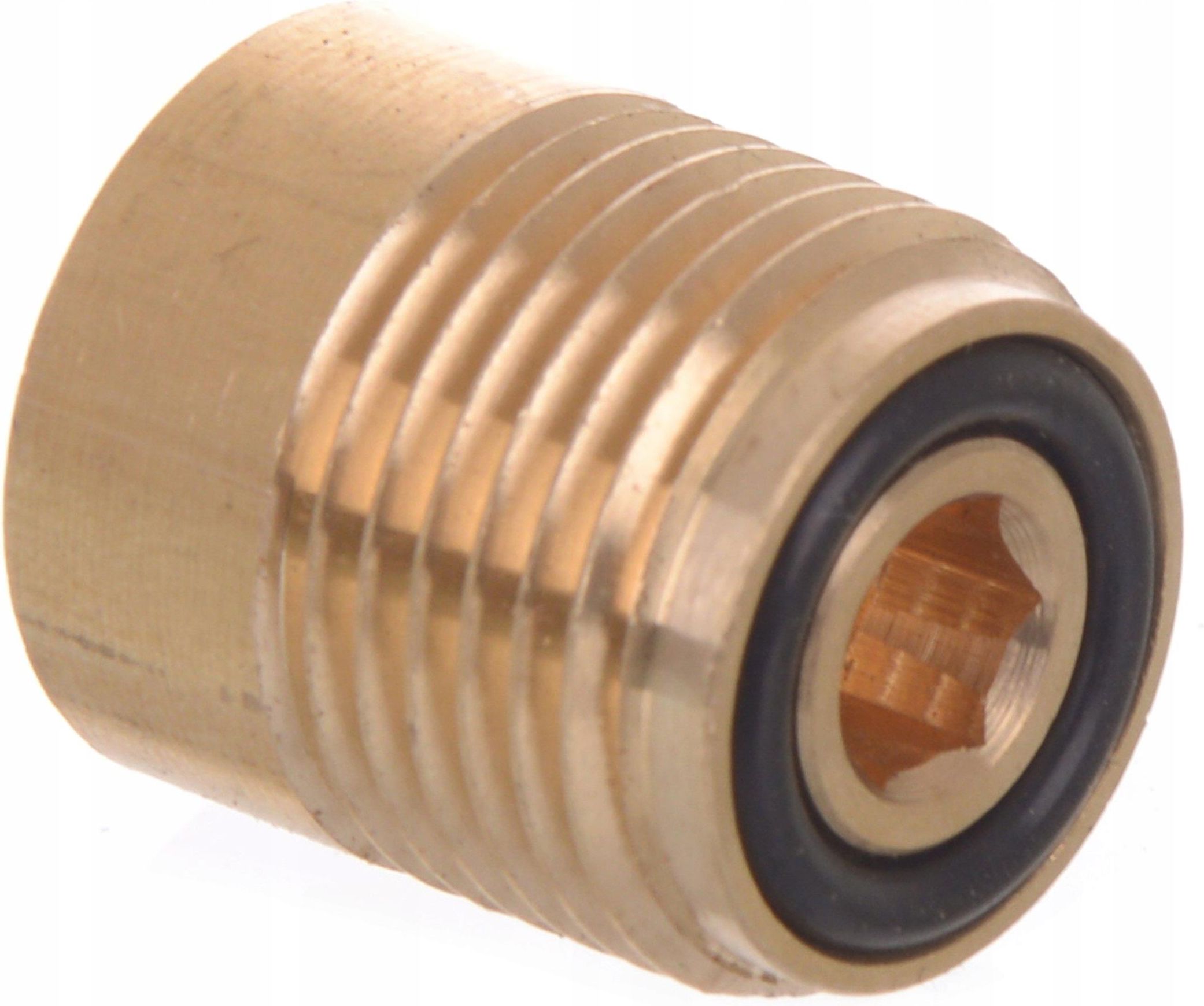 PODSTAWA MOCOWANIA DYSZY Opis przedmiotu Podstawa mocowania dyszy wraz z o-ringiem do pistoletów oraz lanc pozwala na przejście z gwintu 1/4" na standardowy gwint KARCHER M18. Redukcja taka znajduje się na końcu lanc od myjek ciśnieniowych firmy KARCHER z serii profesjonalnej HD/HDS. Dane techniczne Wykonanie: mosiądz, guma Gwinty: 1/4"F - M18 M Zastosowanie: lance od myjek KARCHER Stan: nowe