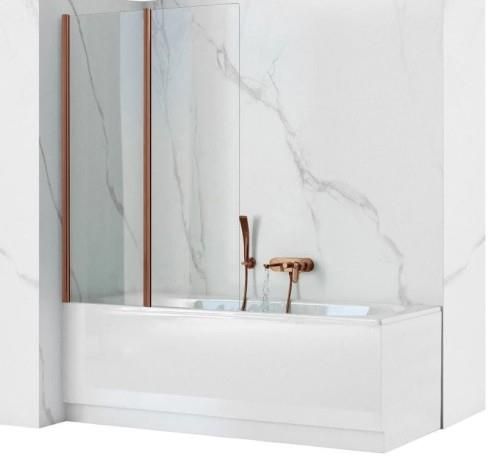 Dane techniczne Producent: Rea - Łazienka z wyobraźnią Typ parawanu: Nawannowy Rodzaj: Składany, dwuskrzydłowy Szkło: Bezpieczne hartowane Grubość szkła: 5 mm Profile: Miedź szczotkowana Kolor szkła: Transparent Rozmiar: 100 cm Wysokość parawanu: 140 cm Montaż: Uniwersalny - lewo lub prawostronny …