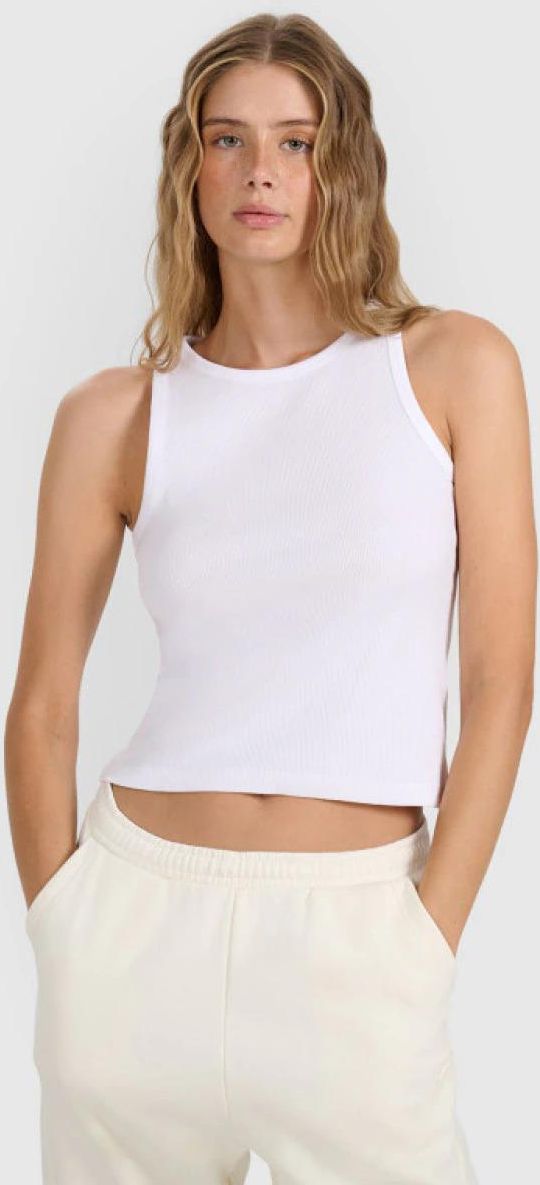 Biały top damski 4F – świeżość, wygoda i uniwersalny styl Biały top damski 4F to ponadczasowy klasyk, który sprawdzi się w każdej stylizacji – od sportowych po codzienne. Czysta biel dodaje świeżości i świetnie komponuje się z każdym kolorem, tworząc niezawodną bazę garderoby. Model ma dopasowany krój slim, który subtelnie podkreśla sylwetkę i zapewnia wygodę przez cały dzień. Standardowa długość do bioder sprawia, że top dobrze wygląda zarówno noszony samodzielnie, jak i jako warstwa pod bluzą, kurtką czy marynarką. Top został wykonany z 95% bawełny i 5% elastanu, co zapewnia miękkość, przewiewność i elastyczne dopasowanie. Dzianina single jersey jest gładka, przyjemna w dotyku i nie prześwituje, co przekłada się na pełen komfort noszenia. Okrągły dekolt wykończony ściągaczem dopełnia całość klasycznym, schludnym akcentem. Ten biały top to idealny wybór na każdą porę roku – uniwersalny, wygodny i zawsze na czasie. Damski top 4F – szczegółowe cechy: kolor: biały krój: slim – dopasowuje się do sylwetki długość: standardowa – sięga do bioder materiał: 95% bawełna, 5% elastan – miękki, przewiewny i elastyczny dzianina: single jersey – gładka powierzchnia i komfort noszenia kolorystyka: jednolita – idealna do każdej stylizacji dekolt: okrągły wykończony ściągaczem – wygodne i klasyczne wykończenie styl: codzienny, minimalistyczny, sportowy