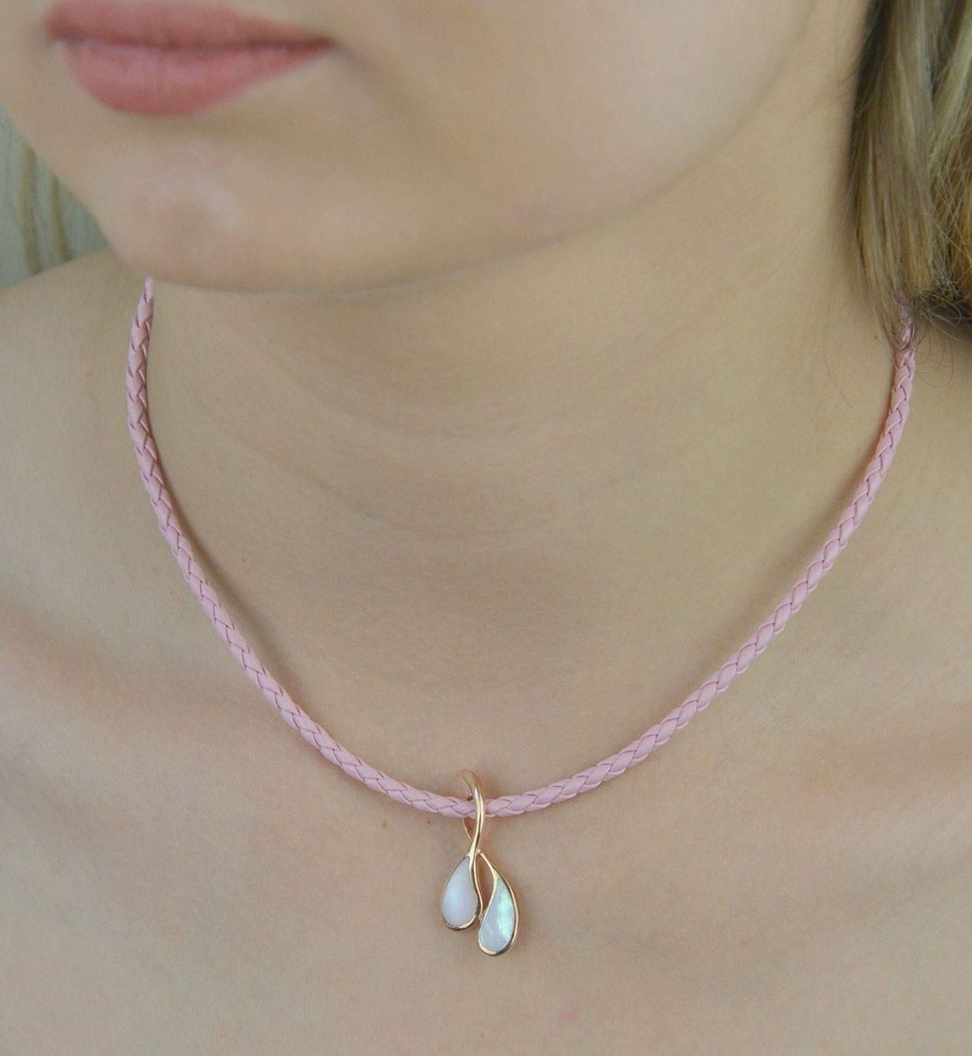 DIAMENT NASZYJNIK RÓŻOWY RZEMYK PLECIONY Barcin