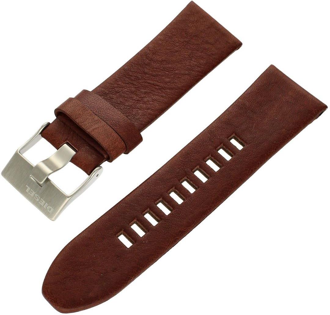 Wytrzymały i solidny pasek amerykańskiej marki Diesel wyprodukowany do zegarka DIESEL DZ4281 w kolorze brązowym został wykonany z bardzo wytrzymałej i wygodnej w użytkowaniu skóry. To sprawia, że pasek doskonale sprawdzi się w każdej sytuacji i będzie świetnym dodatkiem, który urozmaici i odmieni posiadany zegarek. Sprzączka stalowa w kolorze srebrnym z logo marki. Szerokość paska to 26 mm.