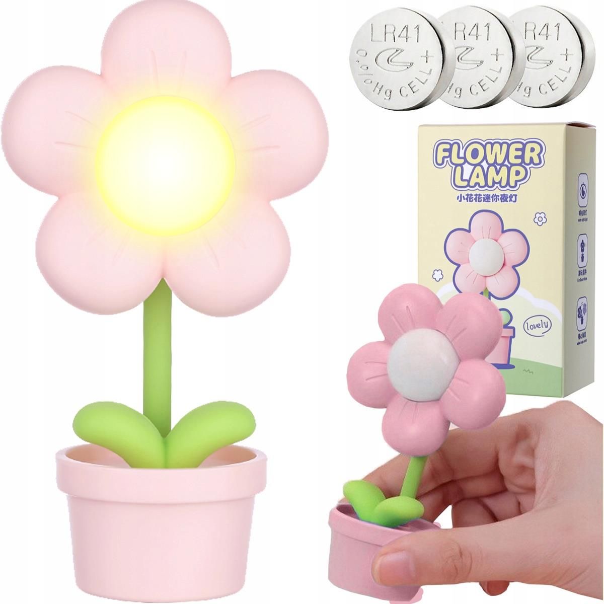 LAMPKA NOCNA LED NA BIURKO KWIATEK Lampka nocna LED na biurko w kształcie kwiatka Heckermann Chcesz dodać element dekoracyjny do pokoju swojego dziecka, który będzie również funkcjonalny? Mini lampka nocna w kształcie kwiatka to uroczy dodatek, który możesz postawić na szafce, parapecie, jak i biurku! Zalety produktu urokliwa dekoracja wyjątkowy design efektywne oświetlenie LED zasilanie bateryjne energooszczędność trwały materiał regulowany kąt świecenia 2 tryby działania łatwy transport Oświetlenie, które zachwyca Mini lampka nocna w kształcie kwiatka to urządzenie, które fantastycznie nadaje się do pokoju dziecięcego. Doda wiele uroku w przestrzeni malucha, a także będzie służyć jako praktyczne źródło światła. Lampka kwiatek to wysokiej jakości oświetlenie LED, które emituje jasne oraz ciepłe białe światło. Twoja pociecha może dopasowywać do swoich potrzeb rodzaj światła, a także kąt świecenia, ponieważ łodyga kwiatu jest regulowana. Specyfikacja techniczna Rodzaj oświetlenia: LED Materiał: ABS i PC Wymiary: 12.2 x 7,1 x 4,5 cm Kolor: różowy Moc: 0,06W Oryginalny element wystroju Mini lampka nocna w kształcie kwiatka została wykonana z tworzywa, które wykazuje wysoką odporność na uszkodzenia, plamy czy zmiany temperatury. Ten produkt sprawdzi się jako lampka nocna podczas zasypiania malucha, a także podczas karmienia czy przewijania, będzie także świetnym kompanem podczas odrabiania lekcji i zabawy. Lampka kwiatek LED jest lekka i niedużych rozmiarów, zatem bez problemu zmieści się na każdym biurku, parapecie czy szafce nocnej. Oświetlenie łatwo można przenosić z miejsca na miejsce. Urządzenie jest zasilane 3 bateriami, które znajdziesz w zestawie. SKU: 0000844