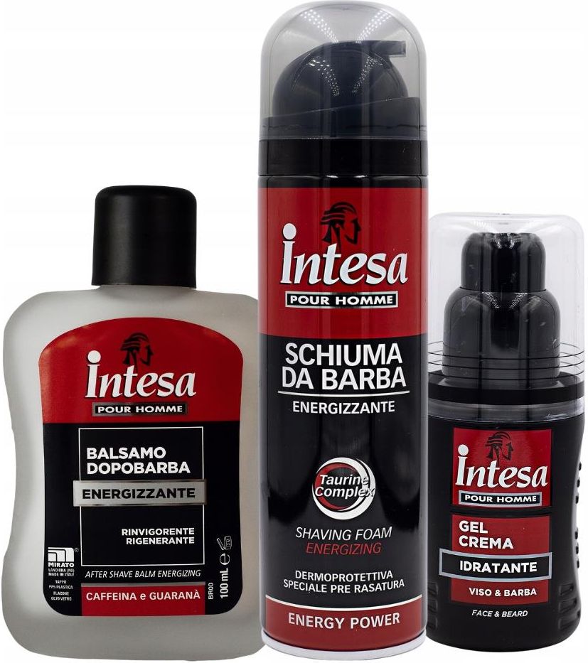 Zestaw zawiera 3 produkty marki Intesa dedykowane dla mężczyz. 1. Pianka do golenia Zawiera substancje zmiękczające i nawilżające, które pomagają przygotować skórę do idealnego, codziennego golenia. Tauryna i kofeina zapewniają przyjemny efekt tonizujący na skórze. Zapach Energy Power …