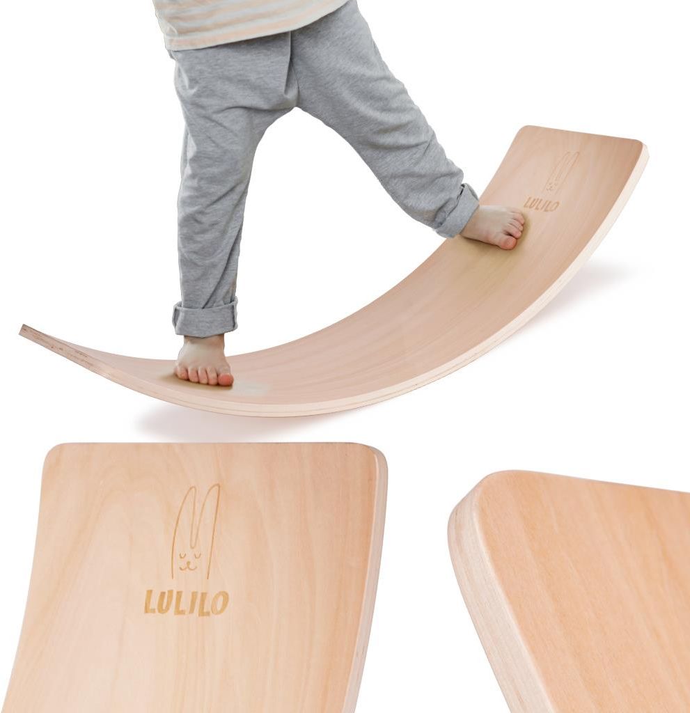 Deska do balansowania LULILO Boldo dla dzieci DESKA DO BALANSOWANIA BALANSUJĄCA BUJAK DLA DZIECI Ćwicz i baw się jednocześnie! Prosta i łatwa w użyciu zabawka może zapewnić wiele zabawy! Deska balansująca będzie świetnym produktem zarówno dla dzieci, jak i dla dorosłych! Każdy odnajdzie swój sposób na przyjemną zabawę. Zgodnie z zasadami opracowanymi przez Marię Montessori, im prostsza jest zabawka, tym lepiej wpływa na rozwój dziecka! Bez wątpienie deska do balansowania idealnie odpowiada tym założeniom! Deska posiada szereg przydatnych funkcji! Oprócz bycia świetną zabawką i wyjątkowo angażującym przyrządem do ćwiczenia, może służyć również jako między innym stołek, na którym maluch może stanąć, aby dosięgnąć na blat. Idealnie również uzupełni tor wyścigowy dla małych samochodzików, gdy jego trasę poprowadzimy zarówno nad, jak i pod deską! A gdy Twoja pociecha zmęczy się zabawą, wystarczy, że położy się na desce, a ta natychmiast zmieni się w bujak, oferując wygodny i przyjemny odpoczynek! Najważniejszą funkcją deski do balansowania jest możliwość wykorzystania jej do ćwiczenia równowagi! Wspaniale wpłynie to na kontrolę własnego ciała, co przyda się zarówno dzieciom w okresie rozwoju, a także dorosłym! W przypadku najmłodszych ćwiczenia korzystnie wpłyną na koordynację ruchową, pozwolą dokładniej zrozumieć, jak kontrolować ciało, a także pomogą w prawidłowym rozwoju stawów i mięśni! Ruch jest niezwykle ważny również dla dorosłych! Ćwiczenia na desce balansującej pomogą zaangażować się w regularną aktywność ruchową, zadbać o wagę i wytrzymałość stawów! Do stworzenia deski zostało wykorzystane wytrzymałe drewno, które poddano profesjonalnej i dokładnej obróbce. Wszystkie powierzchnie deski do balansowania zostały starannie wyszlifowane, dzięki czemu wyeliminowano ryzyko wbicia drzazgi! Aby zapewnić odpowiednią odporność i wytrzymałość produkt został zabezpieczony bezpiecznym dla ludzi olejem, spełniającym wszystkie wymagane normy. Zastosowanie drewna jest świetnym rozwiązaniem dla osób, które cenią sobie środowisko i ochronę przyrody. W porównaniu do produktów wykonanych z plastiku, zostawia on zdecydowanie mniejszy ślad węglowy. Dzięki temu dziecko może nie tylko bawić się ciekawą i ładną zabawką, ale również w przyszłości pozwoli mu cieszyć się przyrodą w nienaruszonej formie. W przypadku najmłodszych ćwiczenia korzystnie wpłyną na koordynację ruchową, pozwolą dokładniej zrozumieć, jak kontrolować ciało, a także pomogą w prawidłowym rozwoju stawów i mięśni! Ruch jest niezwykle ważny również dla dorosłych! Ćwiczenia na desce balansującej pomogą zaangażować się w regularną aktywność ruchową, zadbać o wagę i wytrzymałość stawów! Do stworzenia deski zostało wykorzystane wytrzymałe drewno, które poddano profesjonalnej i dokładnej obróbce. Wszystkie powierzchnie deski do balansowania zostały starannie wyszlifowane, dzięki czemu wyeliminowano ryzyko wbicia drzazgi! Aby zapewnić odpowiednią odporność i wytrzymałość produkt został zabezpieczony bezpiecznym dla ludzi olejem, spełniającym wszystkie wymagane normy. Zastosowanie drewna jest świetnym rozwiązaniem dla osób, które cenią sobie środowisko i ochronę przyrody. W porównaniu do produktów wykonanych z plastiku, zostawia on zdecydowanie mniejszy ślad węglowy. Dzięki temu dziecko może nie tylko bawić się ciekawą i ładną zabawką, ale również w przyszłości pozwoli mu cieszyć się przyrodą w nienaruszonej formie.