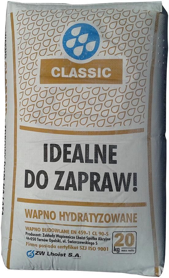 Cechy Wapno hydratyzowane odznacza się dużą elastycznością, co sprawia, że dobrze współpracuje z podłożem. Reaguje optymalnie na zmiany wymiarów liniowych muru, które powodowane są przez zmiany temperatury i wilgotności zachodzące w jego otoczeniu. Wapno hydratyzowane cechuje także wysoki poziom pH, dzięki czemu Natura/Classic nadaje tynkom i zaprawom wysoką odporność na korozję biologiczną. Ma także niski moduł Younga. Zastosowanie Wapno budowlane hydratyzowane jest stosowane do zapraw murarskich i tynków cementowo-wapiennych. Przeznaczone do używania zarówno w pomieszczeniach wilgotnych (łazienki, kuchnie), jak i suchych. Wapno hydratyzowane Natura/Classic jest produktem otrzymywanym przez kontrolowaną hydratyzację wapna palonego. Rozdrobnione wapno palone poddawane jest procesowi gaszenia oraz procesowi separacji dla uzyskania właściwej granulacji. Zaprawy z wapnem hydratyzowanym tworzą szczelne połączenie murarskie z podłożem, dobrze chroniąc mury przed dostępem wilgoci Zalety Podobnie jak gips budowlany, także wapno budowlane hydratyzowane Natura/Classic to wysoka jakość za atrakcyjną cenę. Dzięki swoim cechom korzystnie wpływa na mikroklimat pomieszczeń. Rekomendowane do stosowania we wnętrzach, gdzie przebywają osoby cierpiące na różnego rodzaju alergie. Nawet niewielka ilość zapewnia perfekcyjne wypełnienie nierówności i ubytków na powierzchniach. Wapno hydratyzowane Natura/Classic gwarantuje trwały i odporny tynk.
