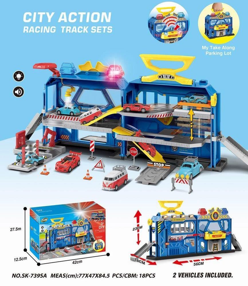 Odkryj fascynujący świat wyścigów z zestawem CITY ACTION Racing Track Sets - wielopoziomowym garażem wyścigowym, który zapewni godziny ekscytującej zabawy! Opis produktu Ten imponujący zestaw to prawdziwe centrum akcji dla małych miłośników samochodów. Wielopoziomowa konstrukcja garażu wyposażona …
