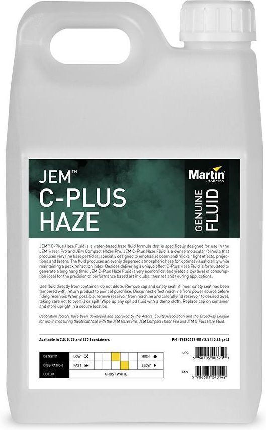 Płyn JEM™ C-Plus Haze Fluid to specjalnie opracowana formuła mgły na bazie wody. Jest zalecana do stosowania z wytwornicami typu hazer. Wytwarzana jest z niego subtelna mgła o współczynniku rozproszenia w zakresie od małego do średniego - idealna do projekcji strumieni światła. JEM C-Plus Haze …