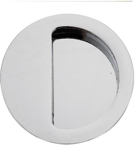 Okrągły uchwyt wpuszczany do drzwi przesuwnych. Wymiary: Ø56 mm; głębokość 10 mm Wykończenie: chrom / mosiądz / nikiel satyna / patyna Cena za 1 sztukę z elementami montażowymi.