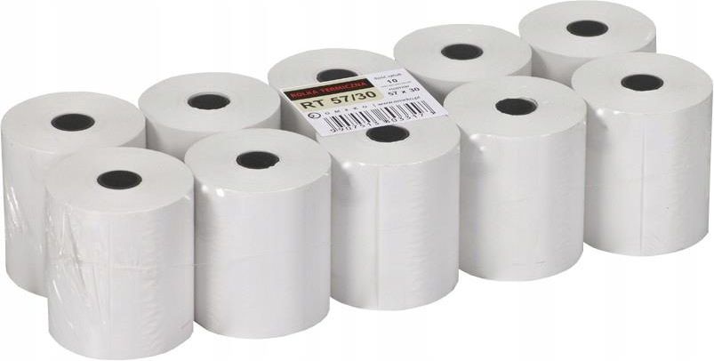 Wszystkie rolki kasowe są wolne od BPA Wysoka jakość stosowanego papieru, gwarantuje długą sprawność urządzeń, co przejawia się nawet w ich dwudziestokrotnie większej żywotności w stosunku do drukarek pracujących na papierze o słabej jakości. Długa żywotność obrazu – paragony mają długą żywotność obrazu, co zapewnia całkowitą zgodność z obowiązującymi przepisami. Szerokość: 57 mm Długość: 30 m Ilość sztuk: 10 szt Kolor: biały