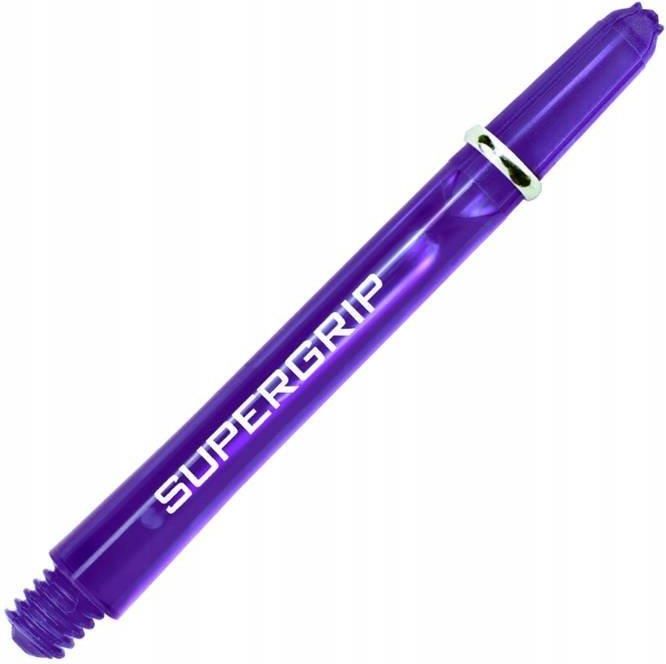 Shafty Harrows Supergrip, ciemny fiolet Nylonowe shafty z fabrycznie dopasowanymi pierścieniami. Gwint 2BA Opakowanie zawiera 3 shafty (w jednym kolorze i rozmiarze) Tabela rozmiarów: Rozmiar | długość | waga | SHORT | 33 mm | 0.8 g | MIDI | 40 mm | 0.9 g | MEDIUM | 47 mm | 1.2 g |