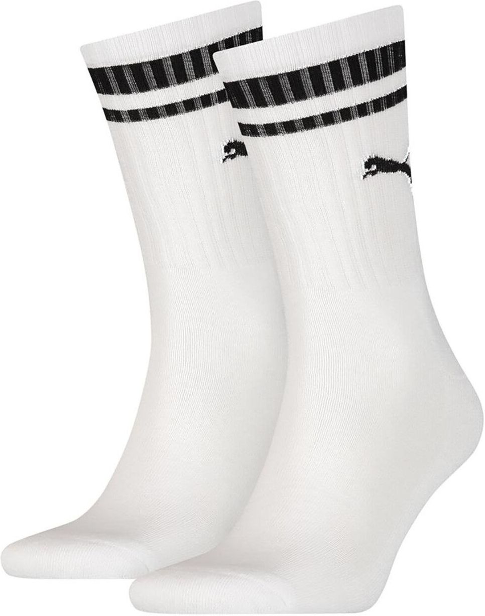 Podkreśl swój sportowy styl, wybierając te skarpety Puma! Model spełni oczekiwania nawet najbardziej wymagających użytkowników, ponieważ zyskał miękka konstrukcję, która przyjemnie dopasowuje się do stopy zapewniając tym samym wygodę na wysokim poziomie. Wysoka zawartość bawełny zadba o optymalną wentylację skóry i zapobiegnie powstawaniu podrażnień. Komfortowy ściągacz utrzyma skarpety na miejscu bez nieprzyjemnego uczucia ucisku. Dłuższy krój za kostkę pozwala wyeksponować skarpety. Zestaw zawiera dwie pary skarpet w kolorze białym z czarnymi detalami i logo producenta. Postaw na sprawdzony produkt i uzupełnij szafę o te skarpety Puma! Materiał: 62% bawełna, 31% poliester, 5% poliamid, 2% elastan