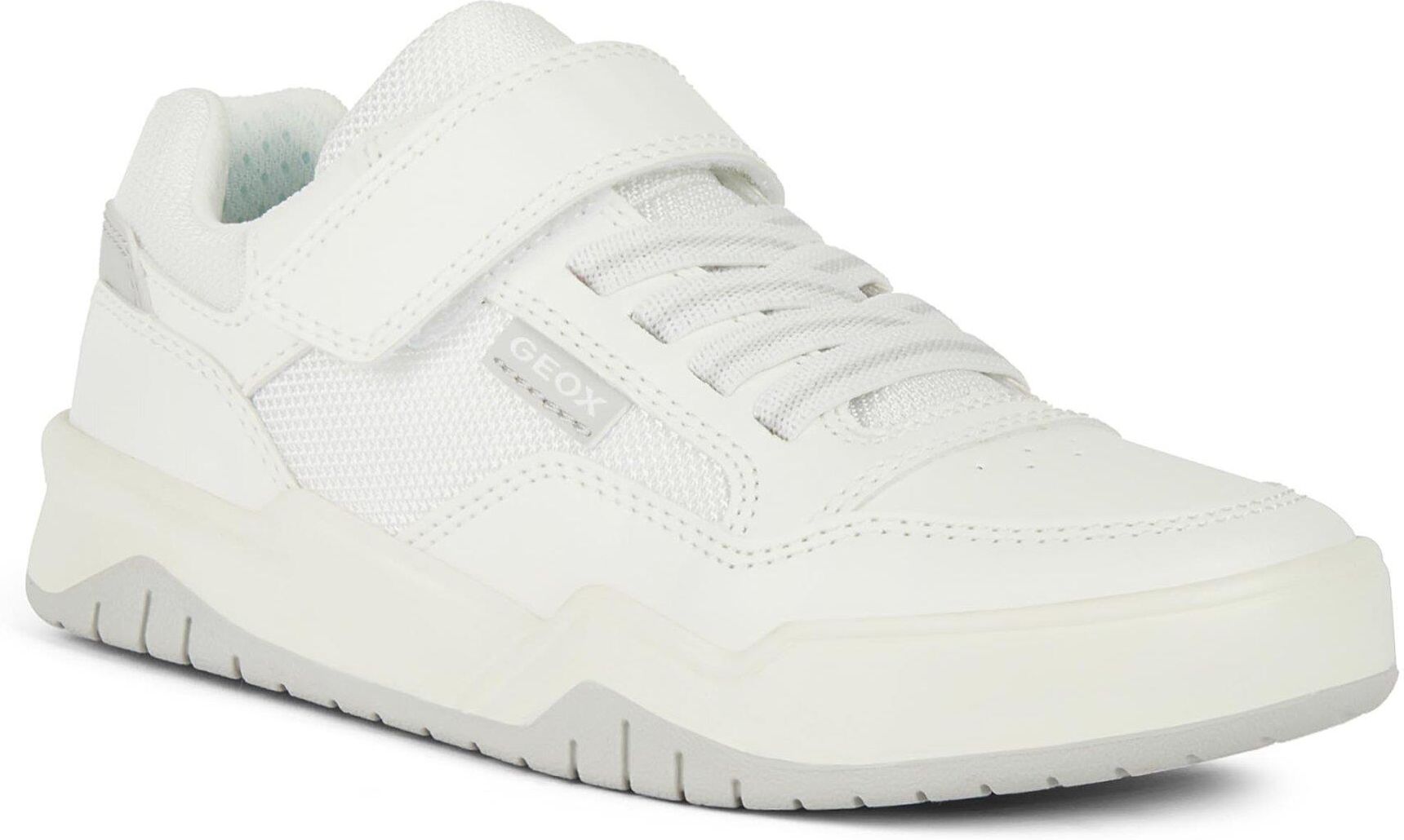 Geox Sneakersy J Perth Boy J367RE 0FEFU C1236 S Biały Perth to wygodne i oddychające chłopięce sneakersy o nowoczesnej estetyce, dzięki czemu idealnie nadają się zarówno do szkoły, jak i do spędzania wolnego czasu. Wykonane z materiału imitującego skórę i nylonu, mają praktyczne zapięcie na rzep i elastyczne sznurowanie dla wygodnego i bezpiecznego dopasowania.