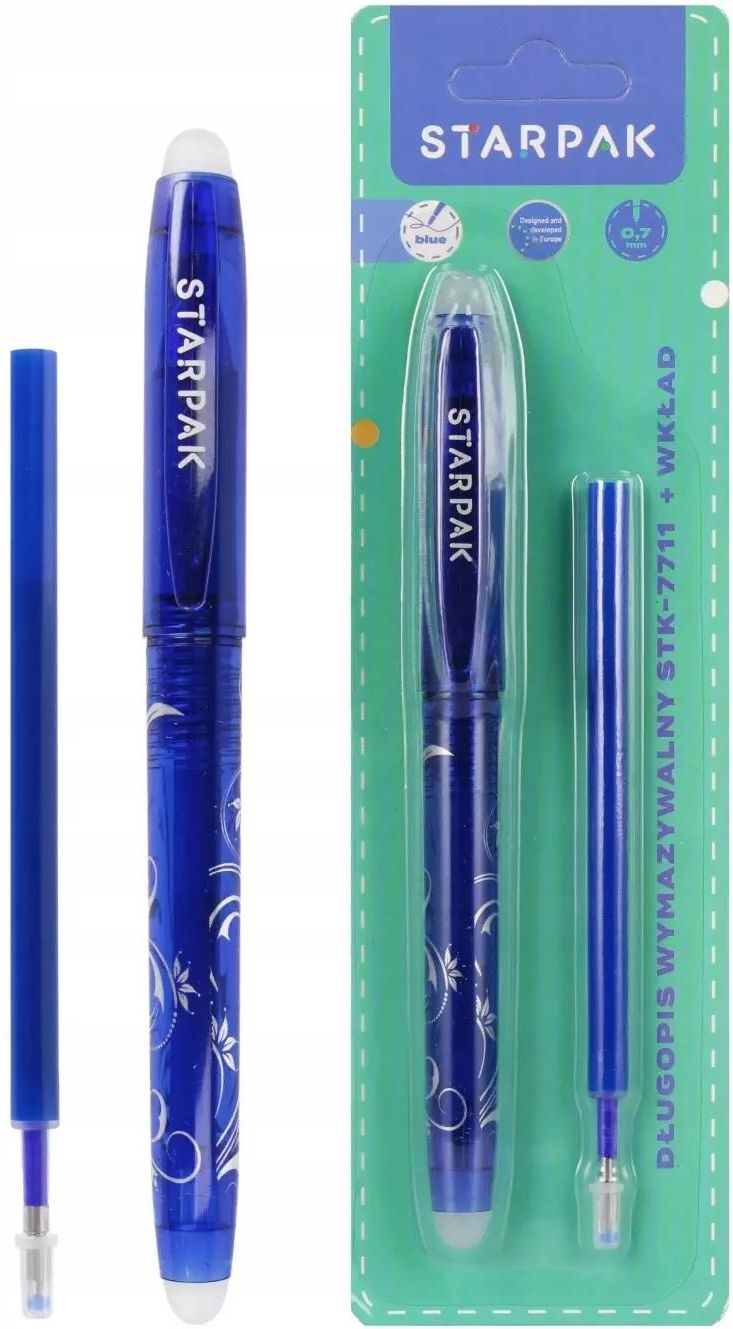 Zalety produktu Dzięki rewelacyjnym długopisom STARPAK możesz natychmiast poprawić swoje błędy i pomyłki. Wystarczy napisany długopisem tekst dynamicznie potrzeć przeźroczystą końcówką umieszczoną na długopisie, tusz zniknie w magiczny sposób. Długopis z tuszem piszącym w niebieskim kolorze, linii …