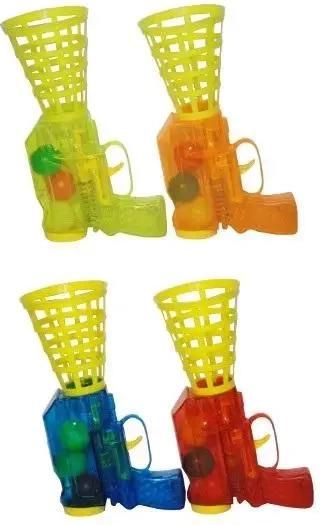 Pistolet do piłeczkowej gry zręcznościowej "łapacz" Podobnie jak w tenisie stołowym, nasz pistolet do gry "łapacz" pozwala na jednoosobowe treningi poprzez odbijanie piłeczki od pionowej bariery. Początkowo, jeden zawodnik działa wyrzutnią, strzelając piłkę, którą następnie drugi musi z łatwością schwytać, korzystając z "koszyka" dołączonego do pistoletu. Zestaw gry sprzedawany jest w praktycznym worku siatkowym, co umożliwia łatwe przechowywanie i transport. Zalecamy ten produkt dla dzieci, które skończyły 3 lata. EAN: 5902496175963