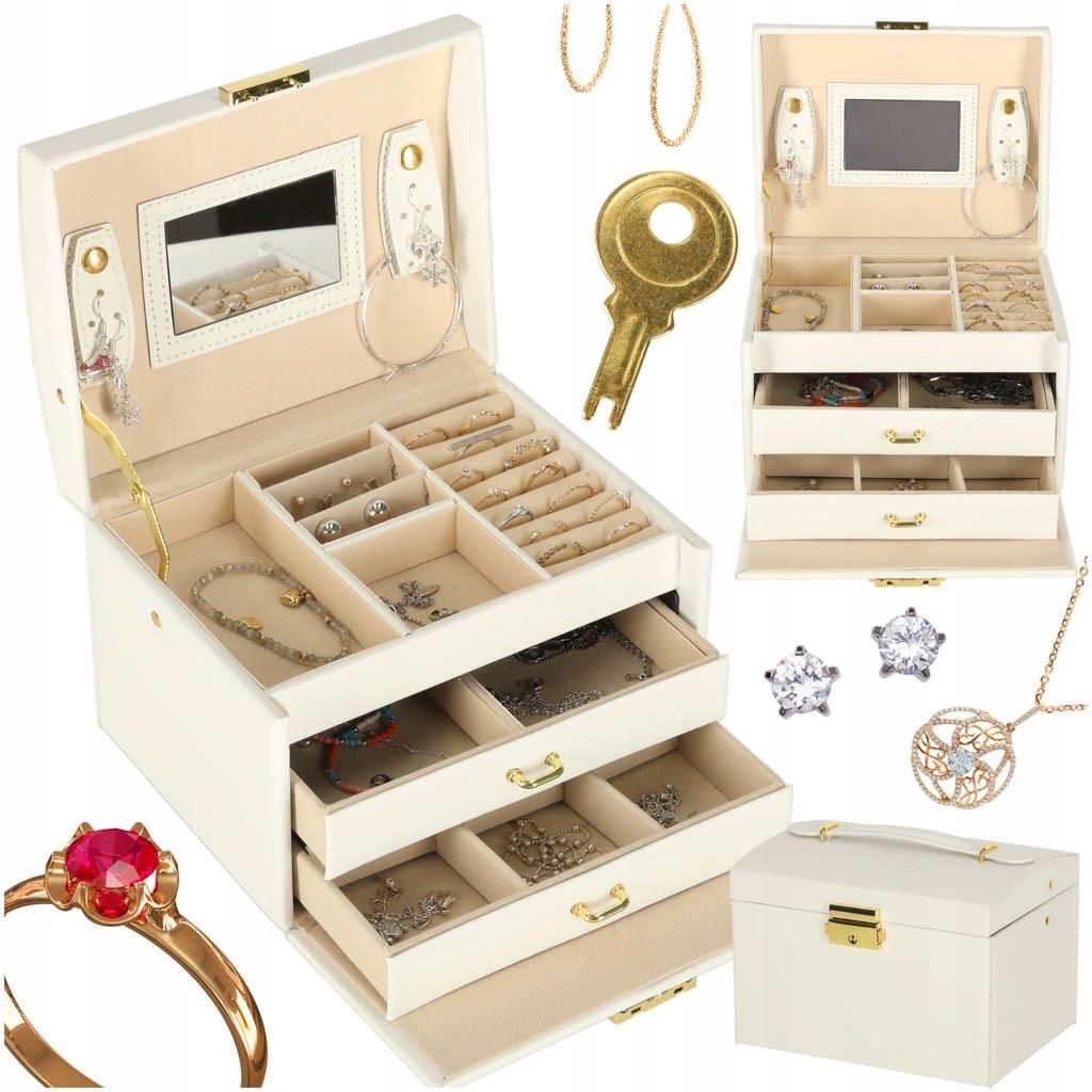 Szkatułka kuferek na biżuterię z szufladami biała Barcin