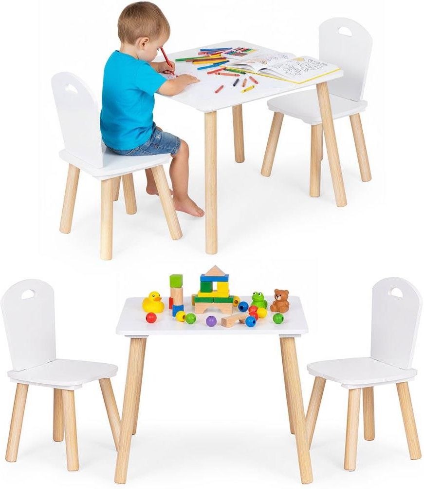 Zestaw Mebli Dla Dzieci Stolik + 2 Krzesła Białe Ecotoys Barcin