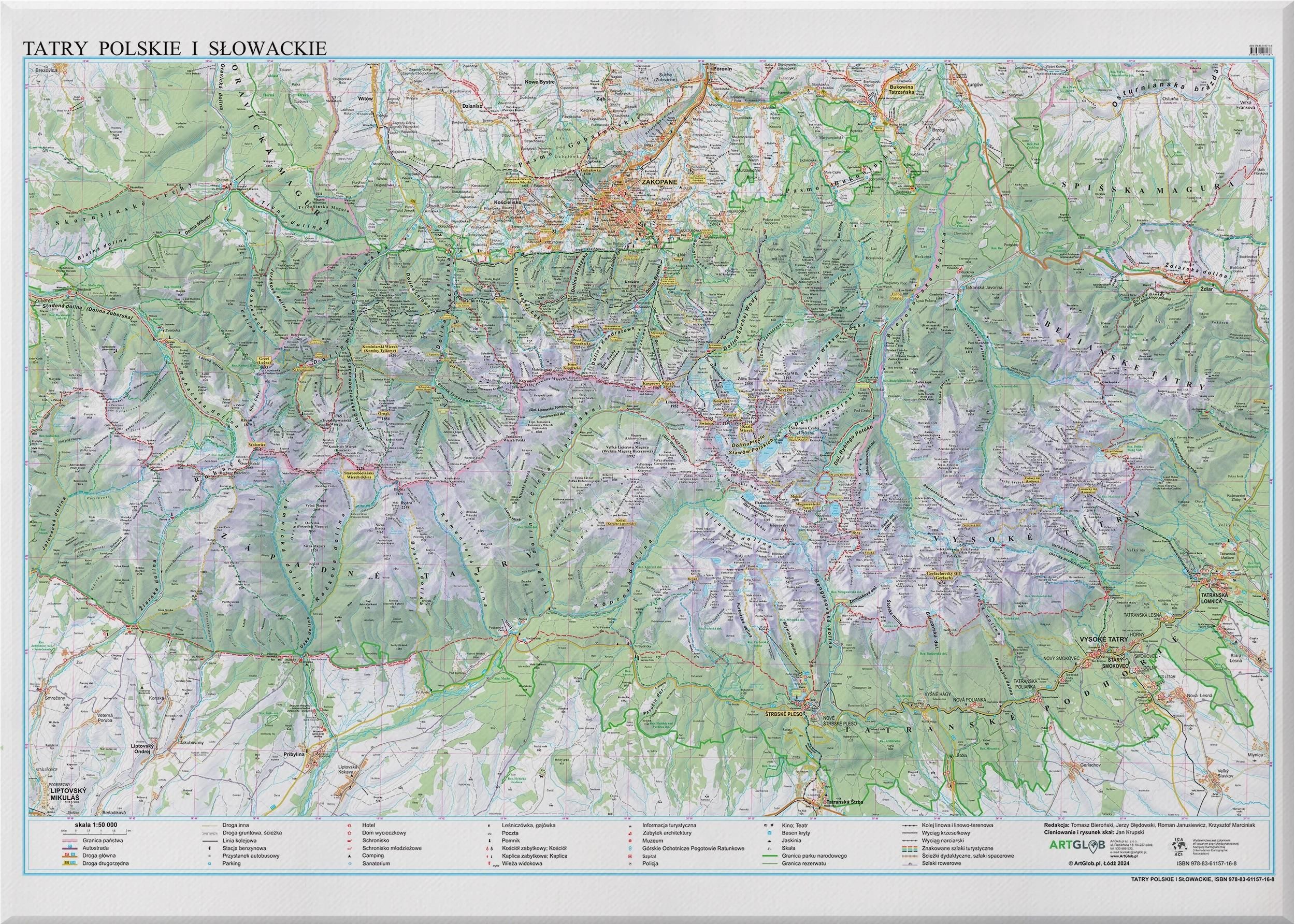 Mapa ścienna Tatry Polskie i Słowackie w skali 1:50 000 wydawnictwa ArtGlob, zawiera bardzo szczegółowy rysunek rzeźby z cieniowaniem oraz treść turystyczną dotyczącą polskiej i słowackiej części Tatr.Na mapie znajdziemy: szlaki turystyczne - piesze i rowerowe, sieć schronisk górskich, hoteli, campingów, sieć wyciągów i kolei linowych, obiekty użyteczności publicznej: poczty, szpitale, itp. obiekty charakterystyczne w terenie i zabytkowe, sieć dróg. Dlaczego warto kupić mapę Tatry polskie i słowackie na płótnie? to unikalny, oryginalny obraz mapy turystycznej, przygotowany przez profesjonalnych kartografów. mapa jest wykonana w najwyższej jakości i estetyce, przy użyciu ekologicznych tonerów i profesjonalnego płótna malarskiego. mapa Tatry polskie i słowackie wydawnictwa ArtGlob.pl jest jedną z najładniejszych map dostępnych na rynku. mapa jest profesjonalnie pakowana i bezpiecznie dojedzie na każdy kraniec świata. Szukasz wyjątkowej dekoracji wnętrz, obrazu do biura lub ozdoby ścian? Mapa na płótnie jest oryginalnym elementem do każdego wystroju domu, salonu lub biura. Mapy dostępne w naszym sklepie są wyjątkowej jakości i najwyższej klasy. Mapy wyszły spod pióra doświadczonych kartografów, nagradzanych wielokrotnie na ogólnopolskich konkursach kartograficznych.Tchnij nowe życie we wnętrze zawieszając na ścianie mapy typu canvas z naszej kolekcji!