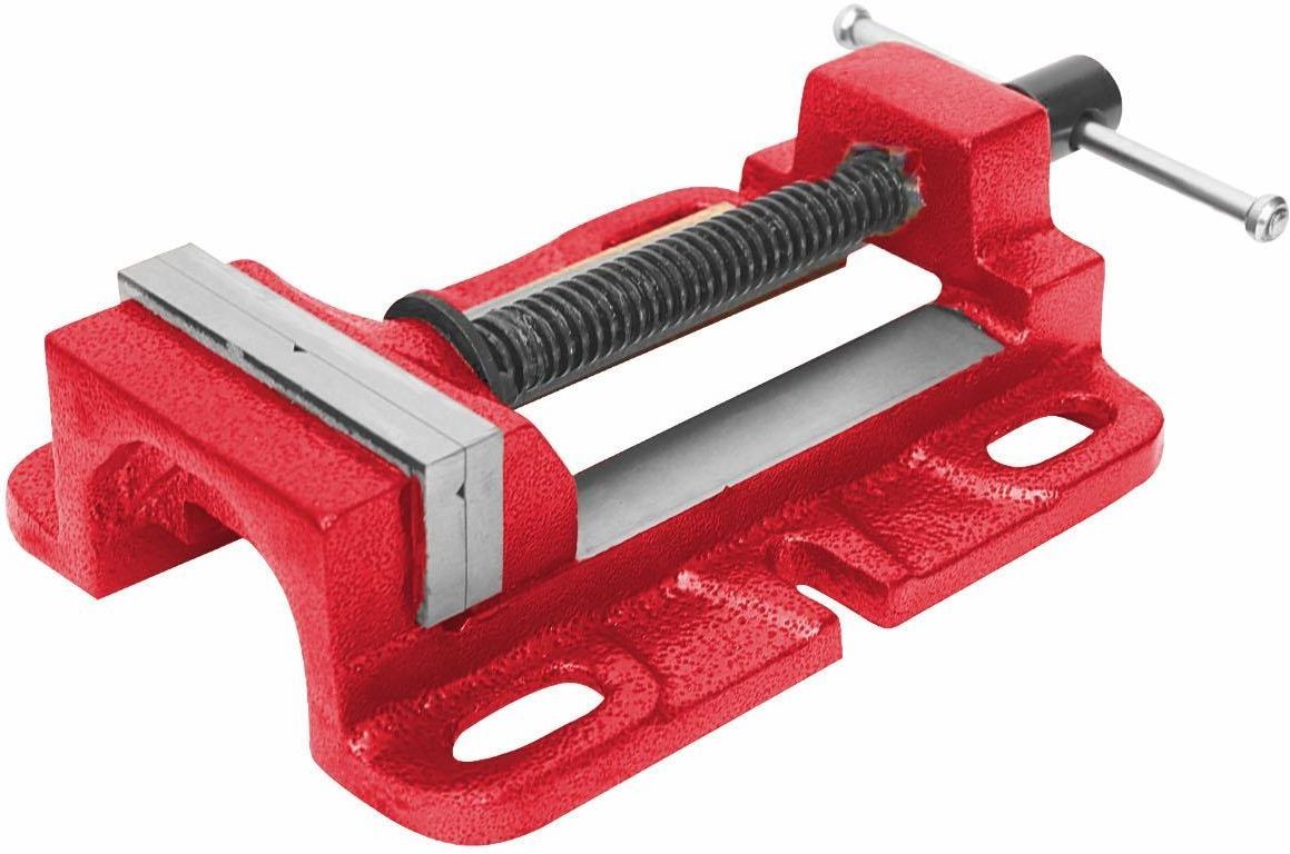 Opis produktu: Korpus wykonany z żeliwa sferoidalnego SG, pokryty farbą proszkową z efektem młotkowym Wymienne, nacinane i hartowane szczęki oraz śruba pociągowa wykonane z utwardzanej stali Precyzyjnie wykonane prowadnice zapewniające płynny ruch szczęk Montowane bezpośrednio na stole warsztatowym dzięki długim rowkom montażowym Idealne do wszelkiego rodzaju prac wiertarskich i lekkich frezarskich Dane techniczne: Szerokość szczęk: 100 mm Waga: 10 kg