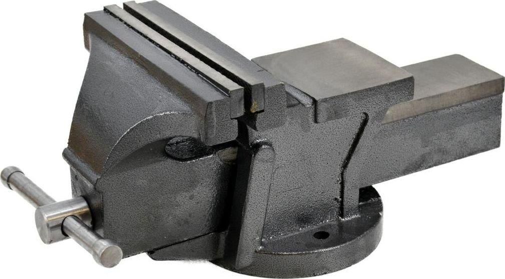 Wykonane z odpornego na uszkodzenia mechaniczne eliwa szarego. Pokryte farb proszkow do ochrony przed korozj. Staa, szeroka i stabilna podstawa montowana bezporednio na stole warsztatowym za pomoc rub. Wymienne, hartowane oraz ryflowane szczki pozwalaj na mocne i bezpieczne zacinicie obrabianego detalu. ruba pocigowa z pokrtem i kocwkami zabezpieczajcymi, uchwyt do mocowania rur oraz kowado do wbijania i ksztatowania detali. Sprawdzi si podczas prac naprawczych, remontowych oraz konstrukcyjnych. Dane techniczne: Szeroko szczk: 100mm Wymiary: 260 x 140 x 150mm Waga: 4,5 kg