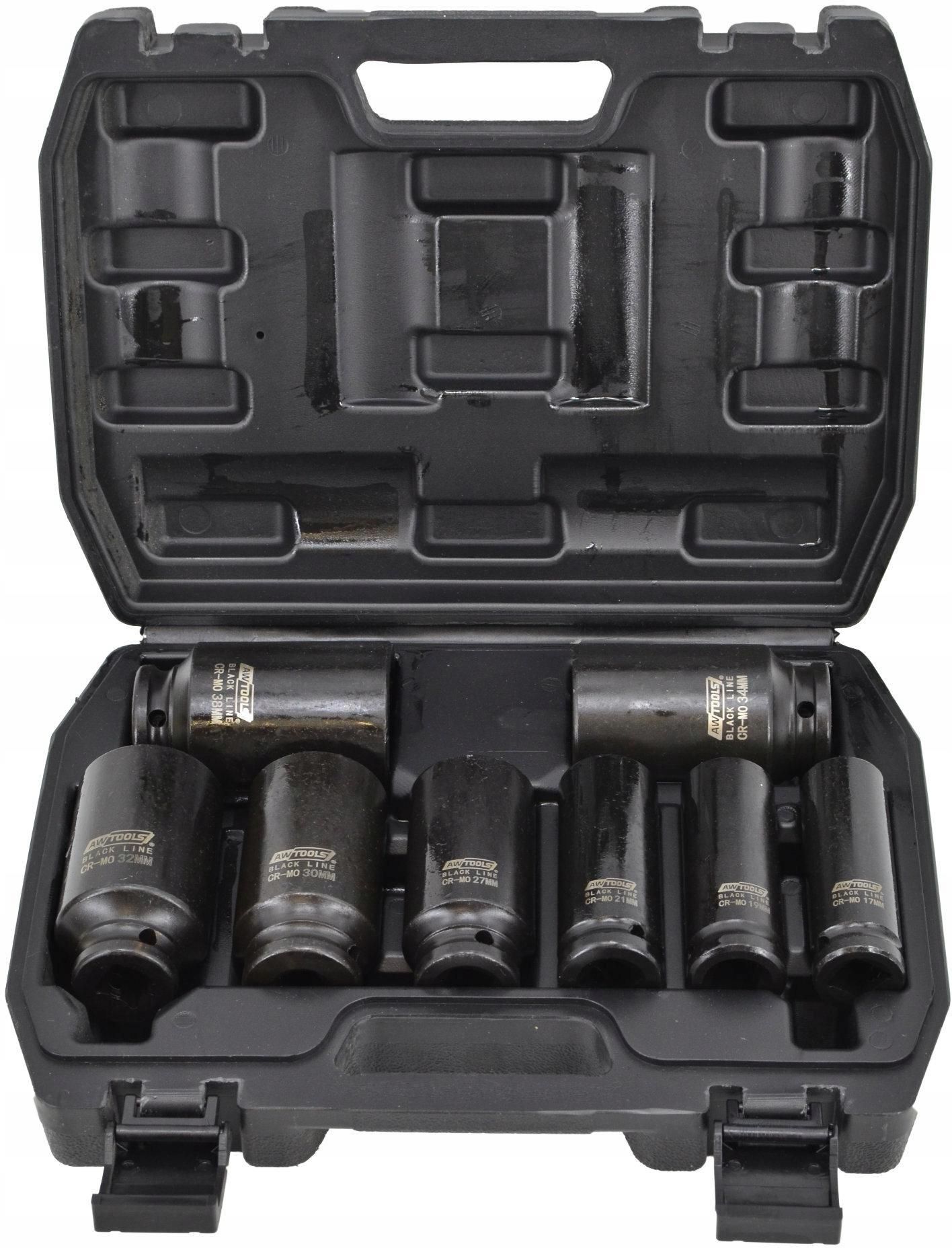 Wykonane z wytrzymaej stali stopowej CrMo, czernione. Wyposaone w otwr pod koek zabezpieczajcy, ktry mocuje pewnie nasadk na chwycie narzdzia. Rozmiary nasadek pasuj do naprawy takich elementw jak: gowice, piasty, wrzeciona, skrzynie biegw, ukady napdw. Dugie nasadki pozwalaj na wygodny dostp nawet do gboko osadzonych rub. Idealne do warsztatw samochodowych, wulkanizacyjnych oraz serwisw. Cao w kasecie z tworzywa sztucznego dla bezpiecznego przechowywania i transportowania. Dane techniczne: Typ: hex Gniazdo: 1/2" Dugo: 78 mm Nasadki: 17, 19, 21, 27, 30, 32, 34, 38 mm Waga: 3,350 kg