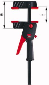 Ścisk uniwersalny jednoręczny Bessey DUO30-8 Praktyczny przełącznik Przełączanie zamiast przekładania: praktyczny przełącznik umożliwia w każdej chwili łatwe przestawienie z funkcji mocowania na funkcję rozpierania. Rękojeść z dźwignią zamykającą Ergonomiczna rękojeść z dźwignią zamykającą przesuwa się równolegle do szyny, zapewniając wygodną i bezpieczną obsługę. Przycisk szybkiego luzowania Wystarczy jedno naciśnięcie przycisku, aby natychmiast zluzować ścisk i przesunąć ramię ruchome. Duże powierzchnie mocujące Duże, płaskie powierzchnie mocujące ze wzmocnionego poliamidu odpornego na uderzenia i pękanie są prowadzone w sposób idealnie równoległy, umożliwiając bezpieczne mocowanie różnych kształtów wokół szyny bez użycia dodatkowych podkładek Szczegóły produktu Siła mocowania do 1 200 N Przełączanie z funkcji mocowania na funkcję rozpierania Rękojeść z dźwignią zamykającą przesuwająca się równolegle do szyny Wygodna obsługa przy użyciu jednej ręki bez dodatkowej siły Możliwość mocowania z każdej strony szyny W opakowaniu z zawieszką Szczegóły produktu Siła mocowania do 1 200 N Przełączanie z funkcji mocowania na funkcję rozpierania Rękojeść z dźwignią zamykającą przesuwająca się równolegle do szyny Wygodna obsługa przy użyciu jednej ręki bez dodatkowej siły Możliwość mocowania z każdej strony szyny W opakowaniu z zawieszką Technika zaciskania tworzona przez firmę BESSEY to przede wszystkim wysoka jakość i innowacje, dzięki którym praca zaciskami staje się szybsza, wydajniejsza oraz przede wszystkim bezpieczniejsza. Od ponad 120 lat mieszcząca się w okolicach Stuttgartu firma zajmuje się profilowaniem i ulepszaniem stali. Potwierdzeniem tego jest wiele opatentowanych produktów oraz rozwiązań technicznych. Oferta firmy obejmuje tradycyjne zaciski żeliwne (popularne „ściski”) stosowane w stolarstwie, masywne zaciski stalowe mające zastosowanie przy spawaniu i łączeniu konstrukcji stalowych, zaciski spawalnicze, imadła spawalnicze jak również grupę narzędzi przeznaczonych do montażu drzwi, okien oraz paneli podłogowych. Program obejmuje także szeroką ofertę zacisków specjalnych np. jednoręcznych, modelarskich itp. Wraz z przejęciem ponad 35 lat temu firmy Erdi Dienner w ofercie znajdują się również ręczne nożyce do blach i narzędzia dekarskie oferowane obecnie pod marką ERDI.