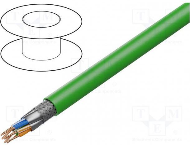 Skrętka Digitus S/FTP kat. 8.1 100 m Kabel instalacyjny DIGITUS Professional CAT 8.2 S/FTP posiada następującą strukturę kabli 4x2x AWG22/1 i osiąga częstotliwość przesyłu do 2000 MHz. Bezhalogenowa powłoka kabla jest zgodna z normami IEC 60332-3-24, FRNC-C, LSZH-3 i CPR Euroclass Dca. Kabel nadaje się do okablowania budynków w obszarach drugorzędnych i trzeciorzędnych. Zgodny z normami ISO/IEC 11801, DIN EN 50173, DIN EN 50288-12-1. Asortyment: Kable instalacyjne skrętkowe Kategoria okablowania: Kat. 8.2 Typ ekranowania: S-FTP, oplot całościowy i pary ekranowane folią metalową CPR: Dca Konstrukcja kabla: 4 x 2 AWG 22/1, skrętka drut Powłoka: LS0H Rodzaj: Kabel Zastosowanie: Sieciowy (LAN) Długość przewodu: 100 m Złącza #1: Brak Złącza #2: Brak Kategoria: CAT 8 Skrętka: F/FTP Kolor: Zielony Pozostałe parametry: Właściwości fizyczne: Przewód: Goły drut miedziany AWG 22/1, drut miedziany 0,60 mm nomianlnie Izolacja: SFS-PE (powłoka z polietylenu spienionego) Całkowita liczba izolowanych przewodów: 8, skręcone w 4 parach Kod barwowy: niebieski-biały, pomarańczowy-biały, zielony-biały, brązowy-biały Ekranowanie pojedynczych par: folia poliestrowa kryta aluminium, 100% pokrycia Ekranowanie całkowite: osłona z oplotu miedzianego 50% Płaszcz zewnętrzny: zgodny z EN 50575 Grubość powłoki zewnętrznej: 0,55 mm Właściwości mechaniczne: Obciążenie rozciągające: 150 N maks. Dynamiczny promień gięcia: 8x AD mm min. Statyczny promień gięcia: 4x AD mm min. Zakres temperatur podczas transportu i składowania: -20°C do +60°C Zakres temperatur roboczych: -20°C do +75°C Zakres temperatur przy instalacji: 0°C do +50°C Średnica zewnętrzna: 7,9 mm, nominalna Ognioodporność: IEC 60332-3-24 Bez zawartości halogenów i dymoszczelny: IEC 60754-2 oraz IEC 61034 Obciążenie ogniowe: 620 Mj/km Waga: 60 kg/km Właściwości elektryczne: Średnia impedancja: 10015 omów przy 1 MHz 100 MHz Pojemność: 43 pF/m nominalna przy 1 KHz Asymetria pojemności (para uziemienie): 99 pF/30 m maks. przy 1 KHz Rezystancja izolacji: 5 gigaomów x km min. Rezystancja DC 2,4 oma / 30 m maks. (4% maks. asymetrii rezystancyjnej) Rezystancja pętli: 5,6 omów / 24 m maks. (3% maks. asymetrii rezystancyjnej) Napięcie robocze: 72 Vdc maks. Tłumienność wtrąceniowa: 85 dB Opóźnienie fazowe: 171 nS/30 m maks. Opóźnienie propagacji sygnału: 13,5 nS/130 m maks. Klasa rozdzielania: d zgodnie z EN 50174-2 NVP: 79%