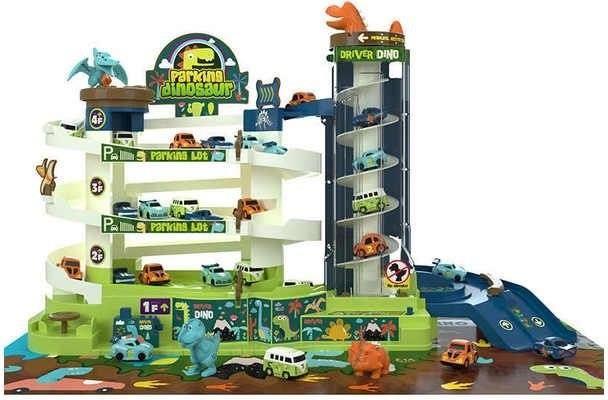 INTERAKTYWNY TOR DINO DINOZAUR KOLEJKA PARKING GARAŻ WINDA 6 AUT ZESTAW Niesamowita zabawa samochodami i dinozaurami na wielopoziomowym garażu Zwykłe tory dla samochodzików już Ci się znudziły? Potrzebujesz jeszcze więcej zabawy? W takim razie ten niezwykły parking to propozycja idealna dla Ciebie! …