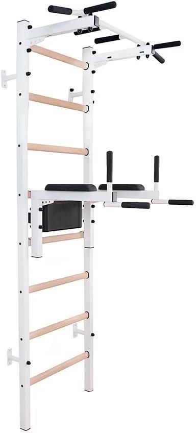 Drabinka gimnastyczna + metalowy drążek + poręcze z podparciem biały BenchK Barczewo