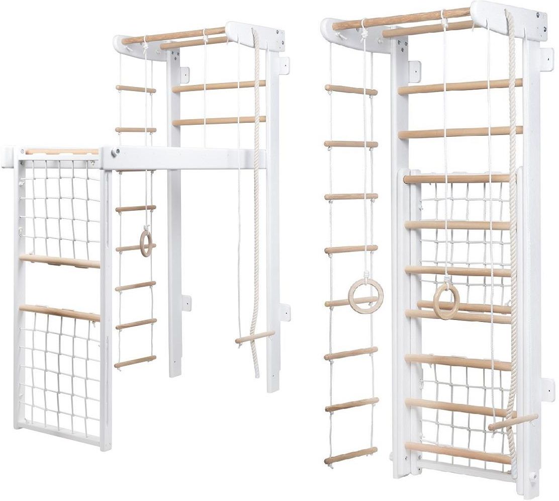 Drabinka gimnastyczna Winner ELEMENTY ZESTAWU drabinka gimnastyczna / drabinka pozioma drążek nieprzesuwny siatka wspinaczkowa kółka gimnastyczne drabinka linowa trapez lina akrobatyczna WAZNE Zestaw przeznaczony dla dzieci od 3 lat i dorosłych Dopuszczalne obciążenie: drabinka gimnastyczna - 120 kg drabinka pozioma - 60 kg akcesoria zawieszane - 60 kg Szerokość drążka: 87 cm Szerokość drabinki: 80 cm Wysokość zestawu: 225 cm Długość drabinki poziomej: 156 cm Głębokość drążka: 60 cm Średnica szczebli drabinki: 38 mm Montaż: do ściany Kolorystyka: biały, szary Zalecenia producenta: dzieci od 3 do 7 lat powinny ćwiczyć tylko pod nadzorem rodziców