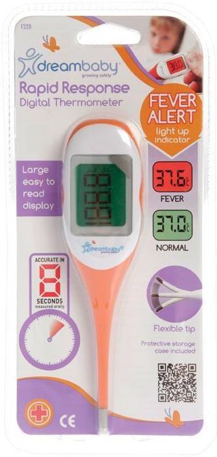 Rośnij bezpiecznie!Termometr ten jest precyzyjnym elektronicznym urządzeniem, zaprojektowanym po to, aby podawać jak najdokładniejsze wyniki temperatury ciała - wyświetlacz zapala się na czerwono w każdej sytuacji, gdy temperatura wynosi powyżej 37°C. Jeśli temperatura mieści się w granicach normy, wówczas wyświetlacz zapala się na zielono.Termometr posiada elastyczną końcówkę, która ułatwia stosowanie. posiada miękką bezpieczną końcówkę posiada duży wyświetlacz ułatwiający odczyt pomiaru zakres pomiaru: 32.0ºC~42.9ºC (90ºF ~109.9ºF ) czas pomiaru: ok. 30 sekund do 2 minut bateria: LR1130 alkalicznaEAN: 9312742303204Waga: 0.100 kgWiek: 0-Wymiary: 95.00 x 43.00 x 210.00