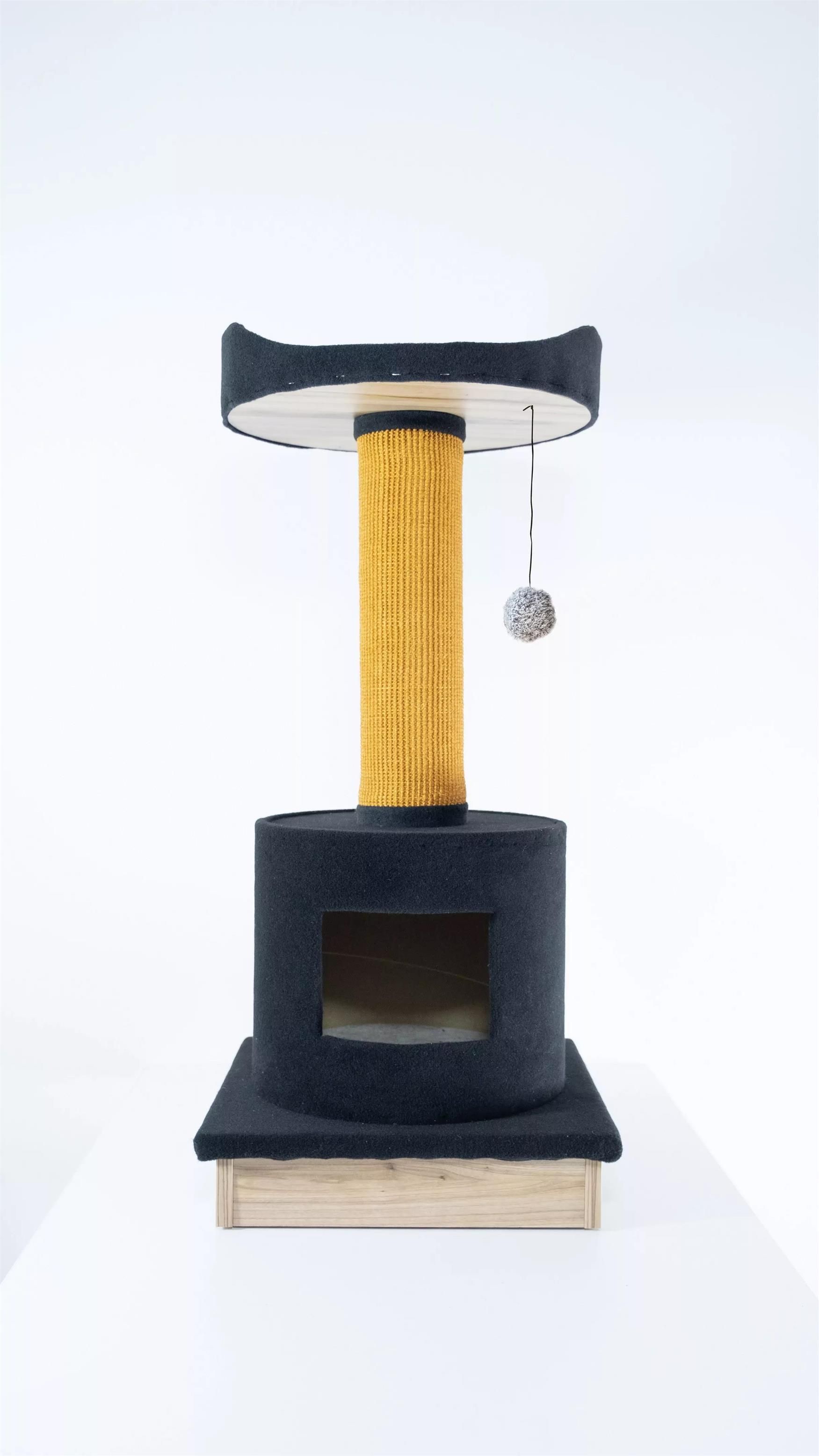 ECOMFY DRAPAK PAUL 103CM BEŻ Paul – praktyczny drapak dla kota Paul to stylowy, średniej wielkości drapak. Należy do linii Family Scratchers Eco. Płyta meblowa, sizal i materiał obiciowy wykorzystane do jego wykonania w 100% pochodzą z recyklingu. Paul posiada dużą powierzchnię do drapania, półkę do odpoczynku i obserwacji, budkę-legowisko, która może pełnić funkcję kryjówki, oraz miękką piłkę na sznurku do zabawy. Do spodu drapaka została przymocowana podstawa z płyty meblowej, co sprawia, że produkt świetnie sprawdzi się jako element wyposażenia wnętrza. Paul dostępny jest w 2 wariantach kolorystycznych: czarno-szarym lub czarno-beżowym. Został wyprodukowany w Polsce. Wygodny drapak o wielu funkcjach Drapak Paul pomoże zaspokoić kocią potrzebę drapania, zabawy, relaksu i schronienia. Ma 103 cm wysokości, więc można go łatwo dopasować do wnętrza. Cechy produktu · Posiada dużą powierzchnię drapania – słupek o średnicy 12 cm daje większe pole do drapania niż inne tego typu produkty, dzięki czemu kot może swobodnie realizować swoje potrzeby. · Jest solidny – produkt wyprodukowano z trwałych materiałów, które zapewniają mu długą żywotność i odporność na uszkodzenia mechaniczne. · Jest wyposażony w budkę-legowisko – koty uwielbiają się ukrywać, a dzięki zaletom drapaka Paul będą mogły bez problemu zaspokoić potrzebę schronienie i wyciszenia. · Stanowi wygodny element wyposażenia – posiada podstawę z płyty meblowej zaopatrzoną w ślizgacze, co ułatwia sprzątanie i zmiany aranżacji wnętrza. · Ma stylową kolorystykę i elegancki design – dzięki uniwersalnym kolorom drapak pasuje do każdego wnętrza. · Jest przyjazny dla środowiska – Paul jest wykonany z materiałów pochodzących w 90% z recyklingu i nadaje się do dalszego przetwarzania. To idealna opcja dla właścicieli kotów, którzy chcą zminimalizować swój negatywny wpływ na środowisko w każdej dziedzinie życia. Rodzina drapaków Family Scratchers Eco powstała z pasji do zwierząt oraz z myślą o naszej planecie. Rodzaje drapaków w linii Scratchers Family Eco: · Alex – duża powierzchnia drapania, miejsce do odpoczynku, piłka na sznurku do zabawy · Alex z półką – duża powierzchnia drapania, półka-legowisko do odpoczynku, piłka na sznurku do zabawy · Paul – duża powierzchnia drapania, półka-legowisko i budka do odpoczynku · Tower – duża powierzchnia drapania, półka-legowisko do odpoczynku, sznurek do zabawy · Mega Jack – duża powierzchnia drapania, dwie półki-legowiska i budka do odpoczynku, sznurek do zabawy · Mata drapak do mocowania – duża powierzchnia drapania, możliwość mocowania w różnych miejscach · Mata drapak – duża powierzchnia drapania, możliwość zawieszenie lub ulokowania w dowolnym miejscu. Ecomfy — nowa linia produktów dla zwierząt stworzona w trosce o środowisko Artykuły Ecomfy tworzymy osobiście – od projektowania do procesu produkcji w fabrykach własnych położonych w Suwałkach i Warszawie. Nasze produkty bazują na naturalnych materiałach, mieszankach pochodzących z recyklingu i surowcach odzyskanych z produkcji. 3P System wartości Ecomfy jest definiowany przez 3P – ludzi (People), zwierzęta (Pets) i planetę (Planet).