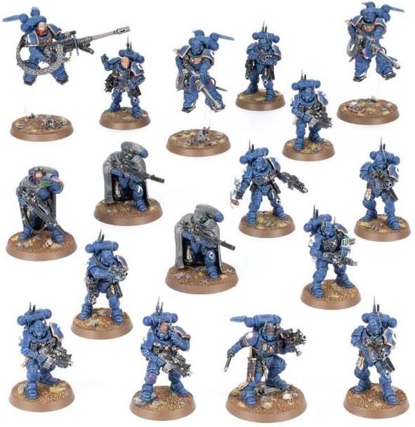 Ten pudełkowy zestaw zawiera 17 wieloczęściowych plastikowych modeli Space Marine Vanguard Task Force Zestaw ten zawiera następujące elementy: – 1x Lieutenant in Phobos Armour – 3x Eliminators with bolt sniper rifles – 3x Suppressors – 10x Infiltrators Powyższe modele są dostarczane z 10 okrągłymi podstawkami Cytadeli 32 mm, 7 okrągłymi podstawkami Cytadeli 40 mm i 3 żebrami mocującymi Flying Groove oraz Arkusz transferowy piechoty Space Marines zawierający 754 naklejki. Te miniatury są dostarczane niemalowane i wymagają montażu – zalecamy użycie kleju do tworzyw sztucznych Citadel i farb Citadel Color.