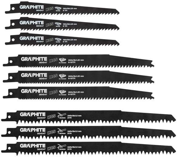 GRAPHITE 56H047 Brzeszczoty do piły szablastej, HCS, zestaw 3 szt. Brzeszczoty do piły szablastej GRAPHITE wykonane ze stali HCS znajdują zastosowanie przy pracach remontowych, budowlanych, rozbiórkowych oraz w przydomowych pracach amatorskich. Zestaw 3 szt. brzeszczotów do cięcia różnego rodzaju …