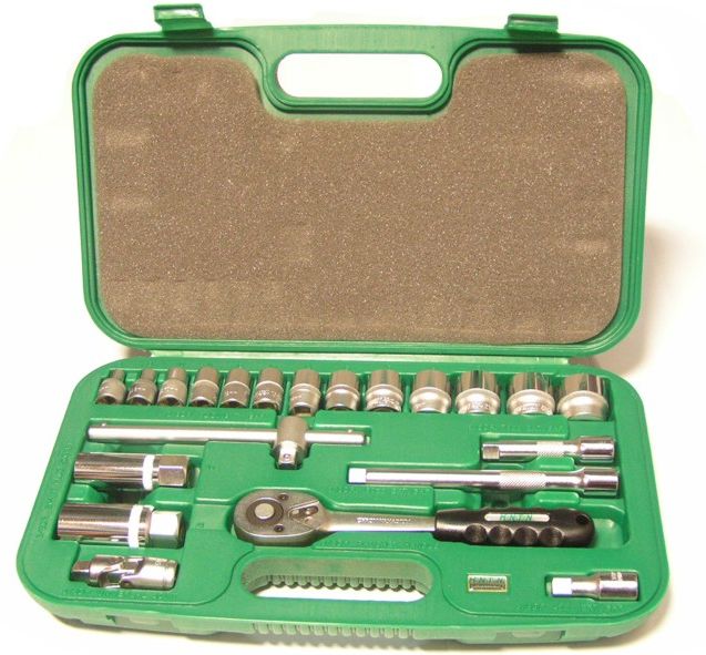 Zestaw kluczy nasadowych z grzechotką 3/8" HONITON H1321 Elementy wykonane z wytrzymałej stali narzędziowej chromo-wanadowej CrV, która zapewnia wysoką jakość, wytrzymałość oraz niezawodność w każdych warunkach. Profesjonalny zestaw kluczy nasadowych najwyższej jakości mieści się w solidnej walizce z bardzo trwałego tworzywa. Dobrano tu najbardziej potrzebne narzędzia, bardzo przydatne w motoryzacji. Zestaw zawiera ⏩ Nasadki 3/8": 6,8,10,11,12,13,14,15,17,19,21,22,24 ⏩ Nasadka do świec (Sparc socket) 3/8": 16,21 mm ⏩ Grzechotka (Ratchet handle): 3/8" ⏩ Przedłużka (Extension bar) 3/8": 45,75 mm oraz 150 mm ⏩ Pokrętło z czopem przesuwnym (Sliding bar): 3/8", ⏩ Pokrętło przegubowe 3/8" ⏩ Kardan (Uniwersal joint): 3/8" Charakterystyka ⏩ Zestaw narzędzi renomowanej firmy HONITON , który sprawdzi się w każdym serwisie i warsztacie. ⏩ Zawartość (21 elementów) zapewni możliwość wykonania wielu prac warsztatowych. ⏩ ergonomiczny uchwyt/rączka ⏩ ponadnormatywna stal CRV, mniejsze naprężenia, trwałość ⏩ wzmocnione zapadki w grzechotce, podwojona żywotność ⏩ Do zastosowania zarówno w serwisie stacjonarnym, jak i serwisie mobilnym czy domu ⏩ Zestaw zapakowany w oryginalną zieloną walizkę. Honiton zawsze stara się podążać za trendami w produkcji narzędzi ręcznych i rozwijać jak więcej nowych produktów. Jest niekwestionowanym liderem pośród producentów narzędzi ręcznych przeznaczonych zarówno dla warsztatów, jak i dla garażowych majsterkowiczów. Dlatego Honiton, dzięki produkcji narzędzi ręcznych ma własną stabilną pozycję na rynku. Jeśli szukasz profesjonalizmu i solidnych produktów narzędzi ręcznych to Honiton jest dla ciebie.