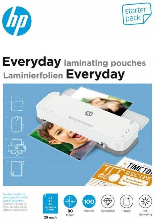 FOLIE LAMINACYJNE HP EVERYDAY, 25 X (A4, A5, A6, B-CARD), 80 MIC, 100 SZT., PRZEZROCZYSTE/POŁYSK folia do laminacji na gorąco format dokumentu: 25 x A4, 25 x A5, 25 x A6, 25 x B-Card grubość folii - 80 mic ilość sztuk w opakowaniu - 100 kolor: przezroczyste /połysk OPIS MARKI HP: Firma z Palo Alto w Kaliforni została założona w 1939 roku przez Williama Hewlett’a oraz Dave Packard’a i jest obecnie jednym z największych przedsiębiorstw informatycznych na świecie. Nasze portfolio produktów HP to między innymi niszczarki do zastosowań w biurze domowym i biurze oraz seria laminatorów obejmująca modele do prac w domu, małym biurze jak i do zastosowań bardziej profesjonalnych. Urządzenia są zaprojektowane w charakterystycznym dla marki HP, eleganckim stylu. Oferta obejmuje również całą gamę folii laminacyjnych – różne formaty i grubości oraz papiery ksero. OPIS KATEGORII AKCESORIA DO LAMINACJI I BINDOWANIA: Bogaty asortyment akcesoriów do laminacji w różnych grubościach i rozmiarach. Doskonała jakość materiałów eksploatacyjnych i odpowiednie urządzenie zapewni profesjonalny wygląd zalaminowanych dokumentów. Dzięki temu, wszystkie dokumenty czy prace mogą wyglądać bardzo profesjonalnie!. Nasza kategoria związana jest z grupami produktów najczęściej określanych jako: folie do laminowania, koszulki do laminacji, laminarki, okladki do bindowania, grzbiety do bindowanicy