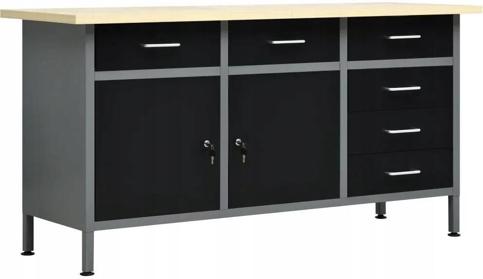 Ten wytrzymały stół do pracy z dużą ilością miejsca do przechowywania i o maksymalnym obciążeniu do 500 kg będzie niezbędnym dodatkiem do warsztatu i garażu. Duży i solidny blat będzie stabilnym miejscem do wszystkich prac naprawczych. Stół warsztatowy ma 6 szuflad, dzięki czemu pozwoli dobrze uporządkować narzędzia, części i akcesoria, takie jak śruby, gwoździe i taśma klejąca. Wszystkie szuflady wyposażone są w prowadnice z łożyskami kulkowymi w celu płynnego wysuwania. Biurko ma również odpowiednią szafkę na większe narzędzia i 2 szafki z zamykanymi drzwiami, w których można łatwo pomieścić wiertarki, kable na bębnach i szlifierki. Dodatkowo stopki mają regulowaną wysokość, możesz więc umieścić swój stół roboczy tam, gdzie go potrzebujesz i stabilnie ustawiać nawet na nierównym podłożu. Mebel ten wykonano z najlepszej stali i płyty wiórowej, dzięki czemu jest wyjątkowo wytrzymały, trwały i łatwy do czyszczenia. Montaż jest łatwy. Ten stół warsztatowy będzie doskonałym pomocnikiem niezależnie od tego, czy chcesz zakończyć prace remontowe, czy spełnić marzenia o miejscu do majsterkowania! Kolor: czarny, szary Materiał: stal, płyta wiórowa, stop metali Wymiary: 160 x 60 x 85 cm (dł. x szer. x wys.) Grubość blatu: 3 cm Maksymalne obciążenie: 500 kg Maksymalne obciążenie pojedynczej szuflady: 10-15 kg Z 6 szufladami na prowadnicach z łożyskami kulkowymi Z 2 szafkami z drzwiczkami zamykanymi na klucz Blat ze słojami przypominającymi drewno Stopki z regulacją wysokości Wymagany montaż: tak OSTRZEŻENIE: aby zapobiec przewróceniu się produktu, musi on zostać przymocowany do ściany za pomocą dołączonego elementu montażowego