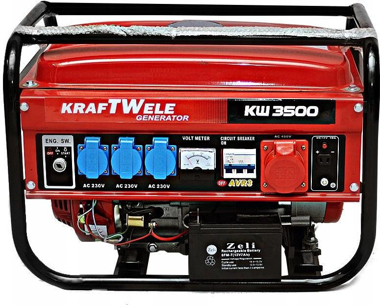 AGREGAT PRĄDOTWÓRCZY KRAFTWELE KW3500 3F EL MOC: 3.5 KW MODEL: KW3500 3F EL Częstotliwość (Hz): 50 Napięcie (V): 230/400 Moc nominalna (KW): 3.0 Moc maksymalna (KW): 3.5 System kontroli: AVR 3 Rozruch: Manualny + Elektryczny Pojemność zbiornika (L): ~ 15 Zużycie paliwa: ok. 0.6 l / h Zależne od obciążenia Wymiary (dł x szer x wys): 590 x 430 x 440 mm Masa (kg): 38 ⚙ JEDNOSTKA NAPĘDOWA: Typ: 1-cylindrowy, chłodzony powietrzem, 4-suw Paliwo: Benzyna 95 Zasilanie: Gaźnik Olej: 10W40 Rozruch: Manualny (szarpak) + Elektryczny Praca ciągła: 8 mth. Ilość cylindrów: 1/I TABLICA KONTROLNA: 3 X GNIAZDO 230V. GNIAZDO UZIEMIENIA. 1 X GNIAZDO 400V. WOLTOMIERZ. WŁĄCZNIK URZĄDZENIA / STACYJKA. 1 X GNIAZDO 12V - FUNKCJA PROSTOWNIKA. Prezentowane zdjęcia mają charakter jedynie poglądowy. Urządzenia mogą odbiegać od pierwowzoru ze względu na różne dostawy towarów. Najnowsze informacja otrzymasz po kontakcie telefonicznym lub mailowym.