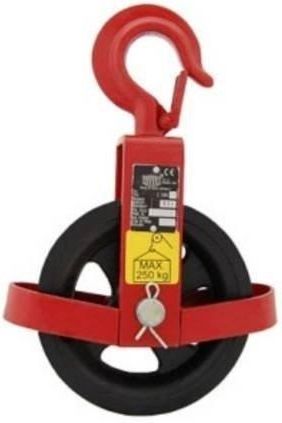 Zblocze linowe hakowe o średnicy 125 mm i symbolu BL125 Zastosowanie: Zblocze hakowe stosowane do wyciągania ręcznego. Wykorzystywane są w budownictwie oraz wszędzie tam, gdzie zachodzi potrzeba pracy z dużymi obciążeniami Dane techniczne: Średnica: 125 mm Dopuszczalne obciążenie robocze: 500 kg Obciążenie zrywające: 2500 kg Koło wykonane z żeliwa - tulejowane Hak ruchomy - obracany o 360 stopni Hak z zabezpieczeniem zatrzaskowym Stosować z linami o średnicy od 12 do 20 mm